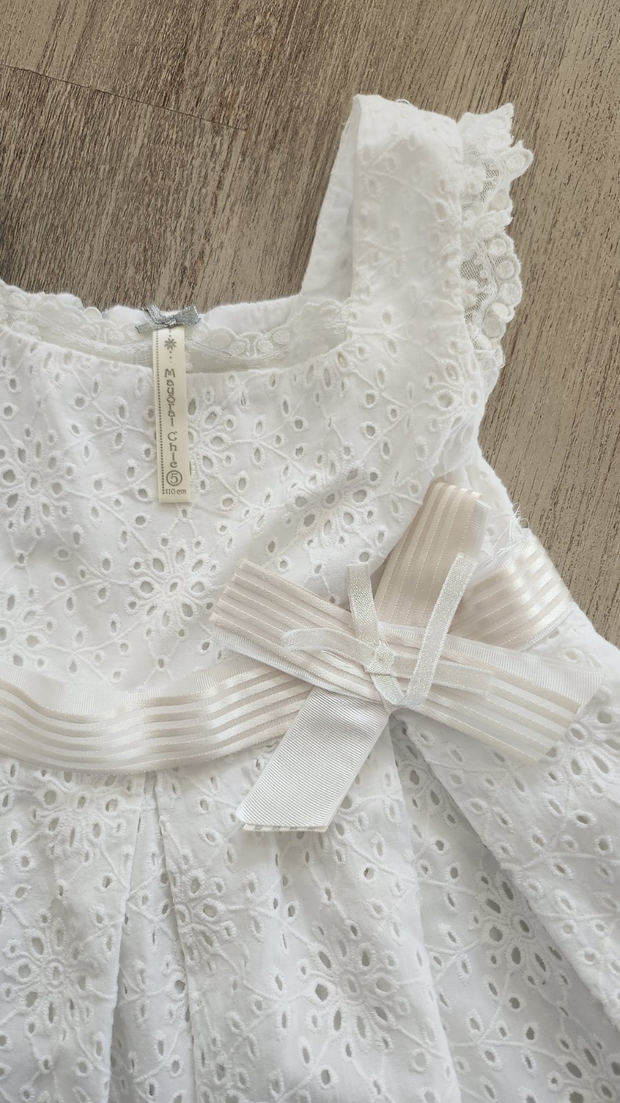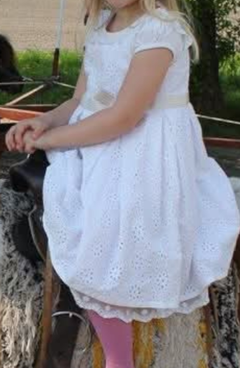 Krásne málo nosené šaty s mašľou.Krásna dierkovaná látka,je podšitá,zo spodu sú pekné čipky,takže šaty sú nepriesvitné