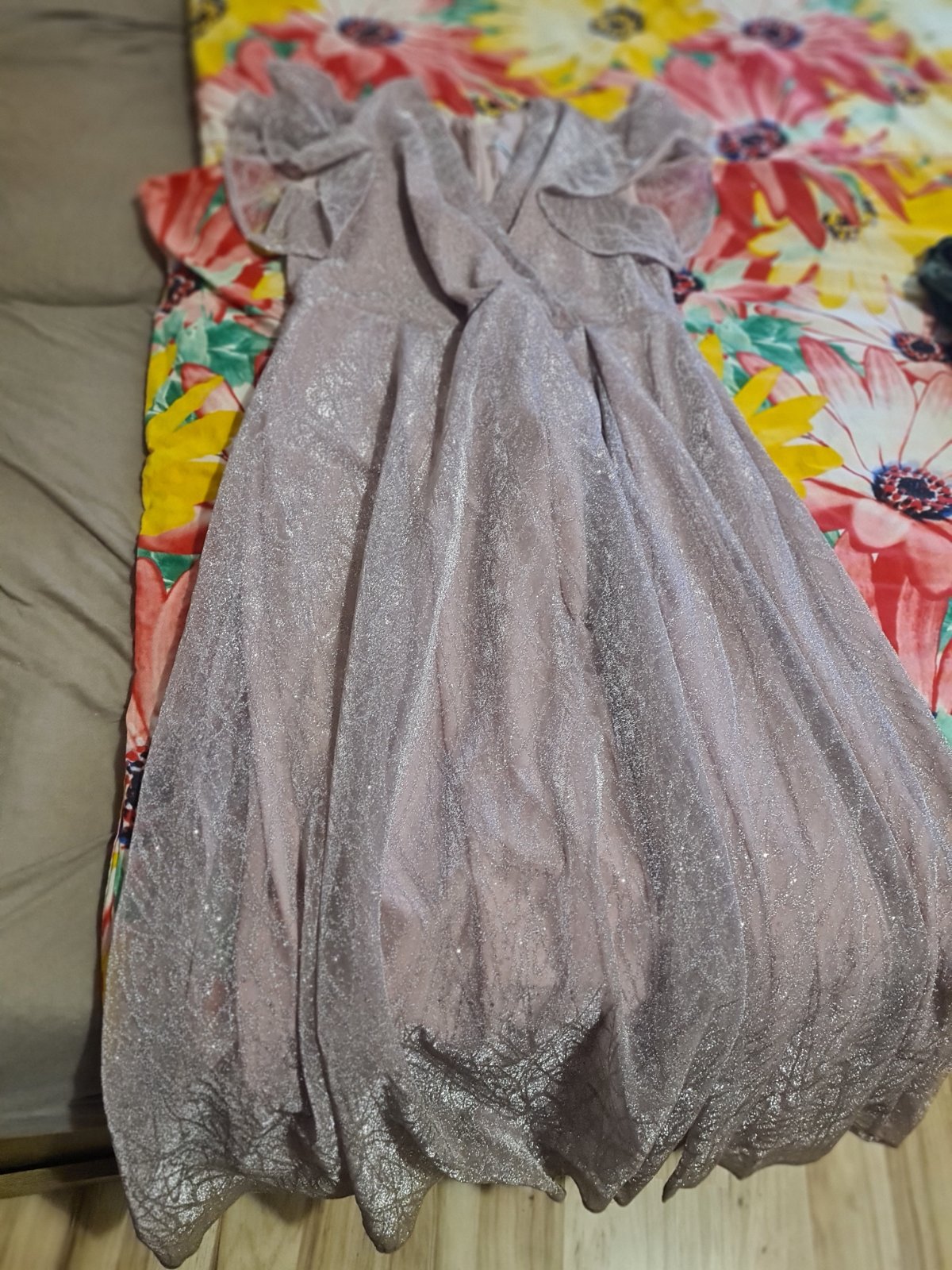 Predám tieto nádherné šaty,mala som ich oblecene na svadbe a mali velķy uspech. Su cele trblietave. Velkost je pisana 48 ale sadnu na 46tku . Su velmi kvalitne,a krasne sa cele ligocú. Na chrbte je zips. Saty skryju nedostatky a pekne sa prisposobia postave. Vhodne na svadbu, ples aj stužkovu. V skutocnosti este krajsie ako na foto.
