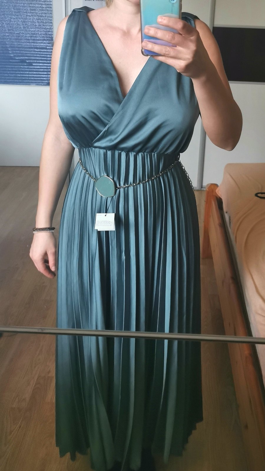 Krásne ľahučké šaty z podšívkou v super stave 2x oblečené. Rozmery obvod pásu 70cm, prsia 78cm a dĺžka je bez ramienok 120cm s ramienkami 137cm.