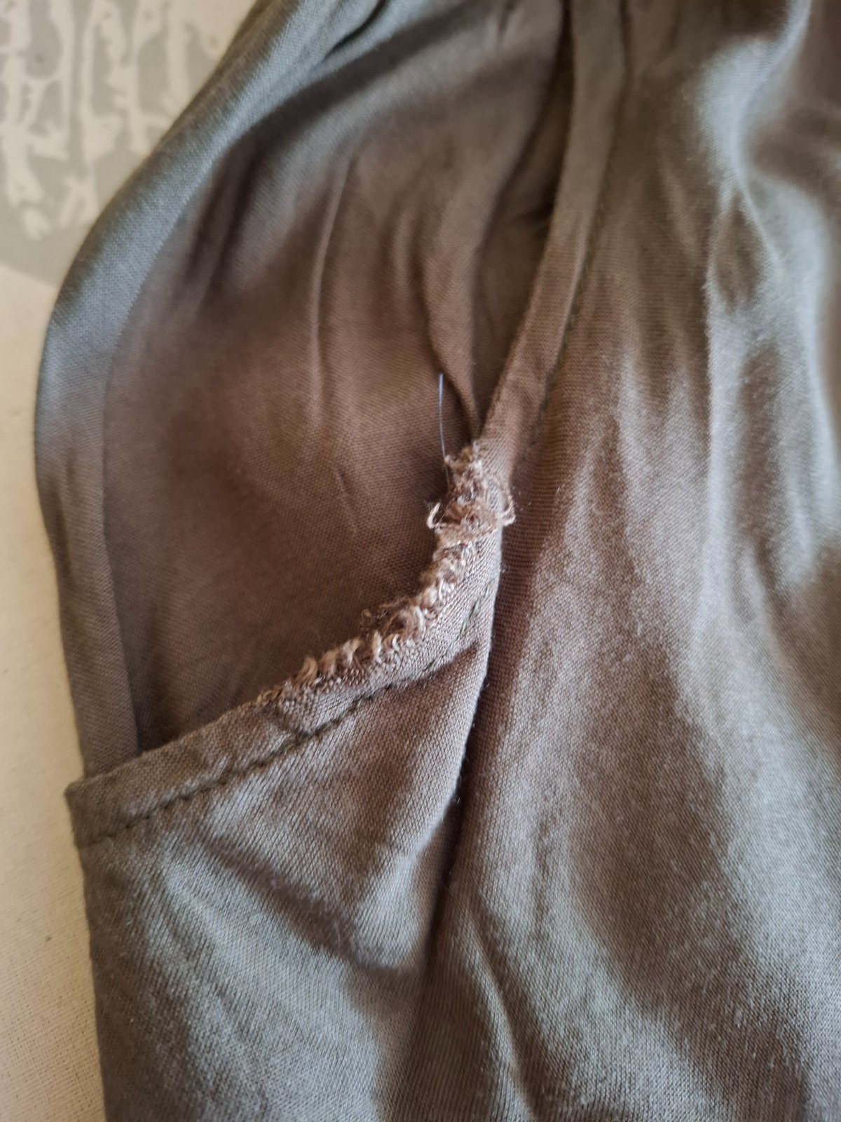 Nosené, zn. C&A, veľkosť 40, s opaskom, podsite, vačky. Jeden bol od novoty poškodený, cena 6 Eur