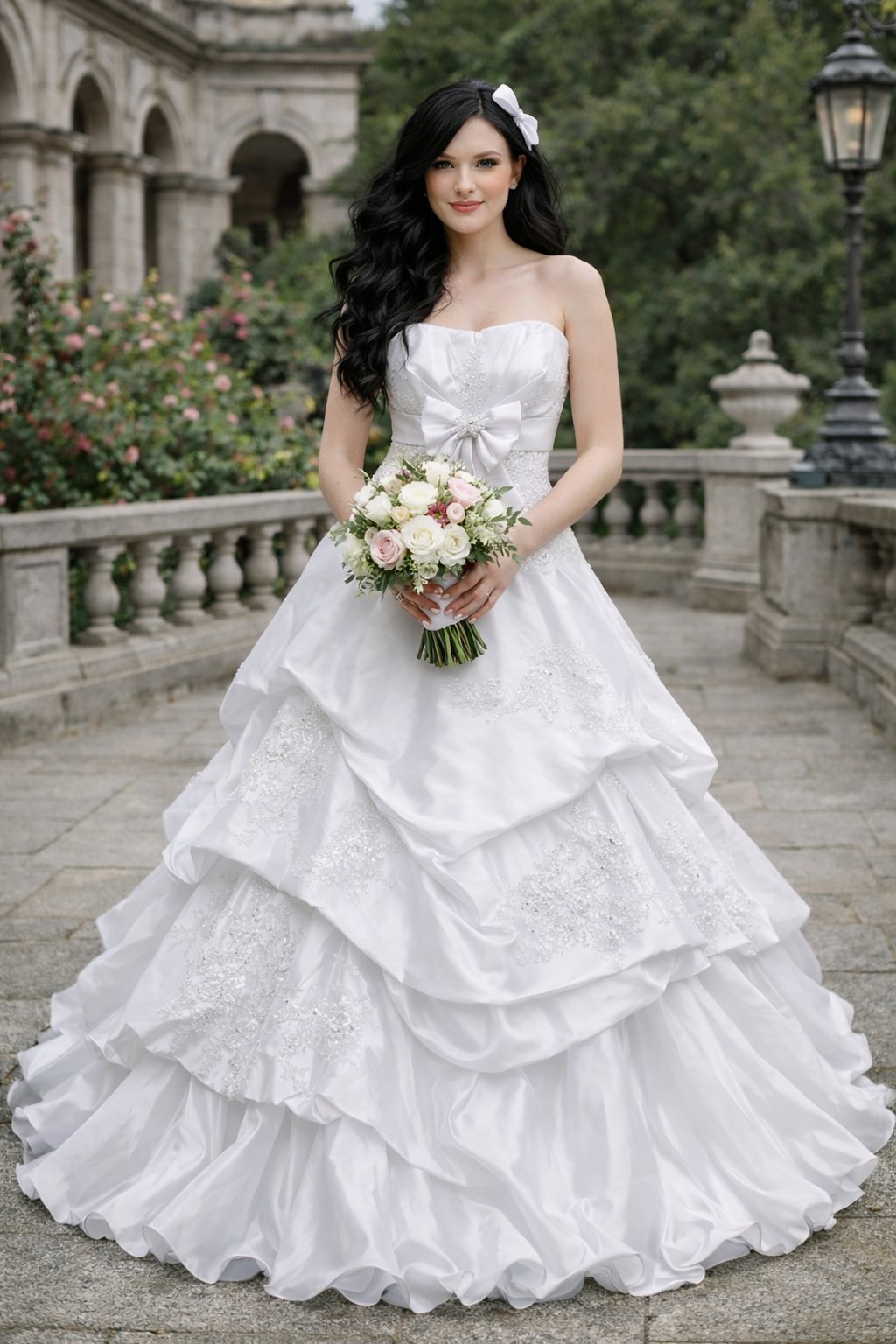 Biele šaty precízne do detailov prepracované, materiál satén, vzadu na zips a šnurovanie