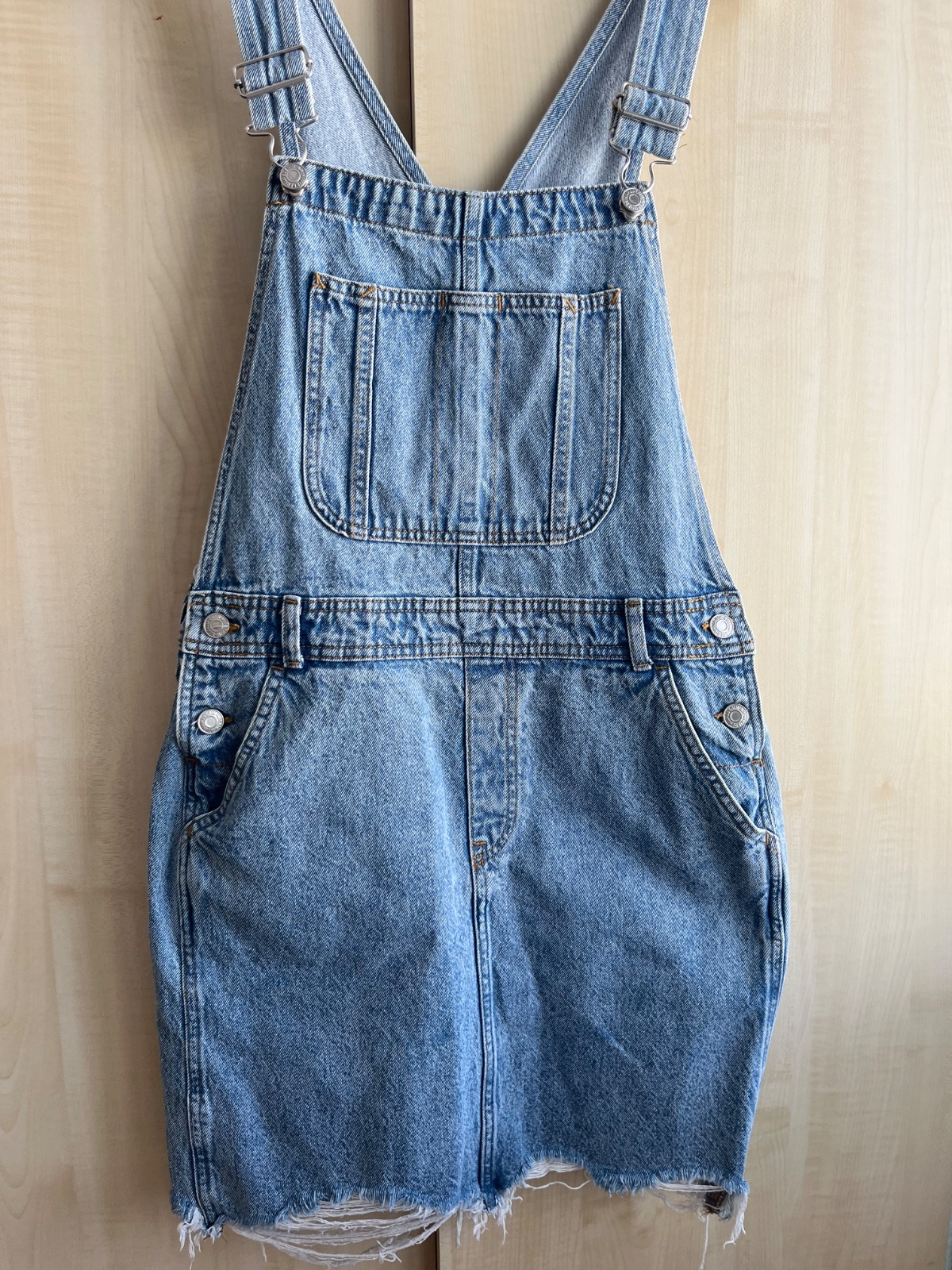 Nosené ninimálne, výborný stav. Nastaviteľné traky s kovovými prackami, šev v páse, gombíky na bokoch. Plus poštovné.