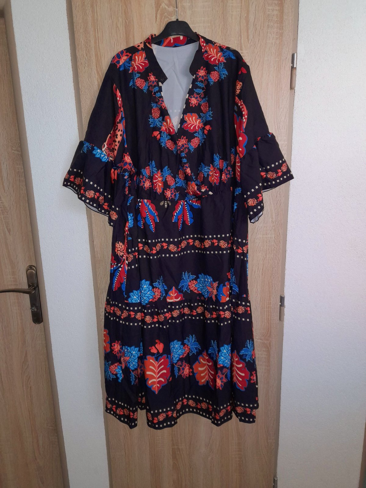 Predám krásne dlhé šaty, oblečené raz, top stav. Midi Dĺžka,veľkosť nieje uvedená,odhadom XL. Je to voľný,oversize strih. Boho štýl