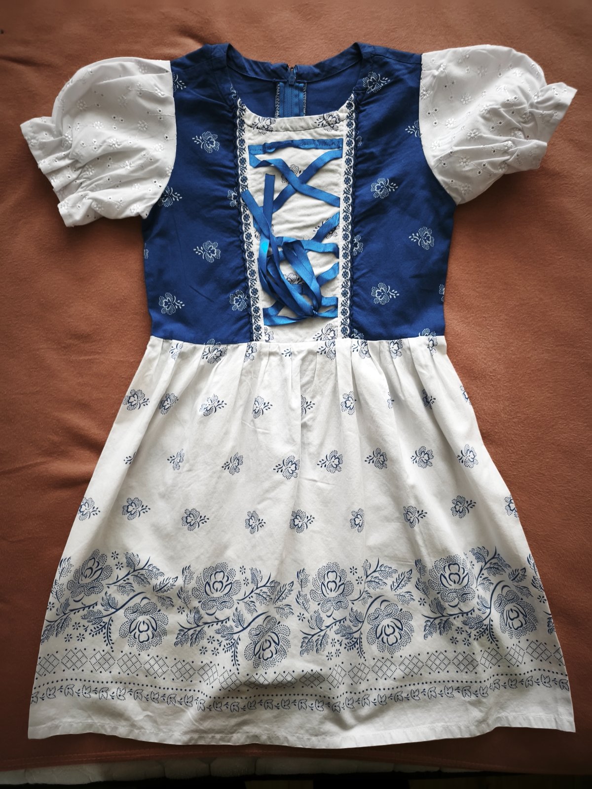 Krásne dievčenské šaty, len vyprane a vyskúšané. Nemajú žiadne poškodenia, sú úplne nové, len som kvôli praniu odstrihla vysacku. Zapínanie na zips, vhodné aj pre baculatejsie dievčatko.