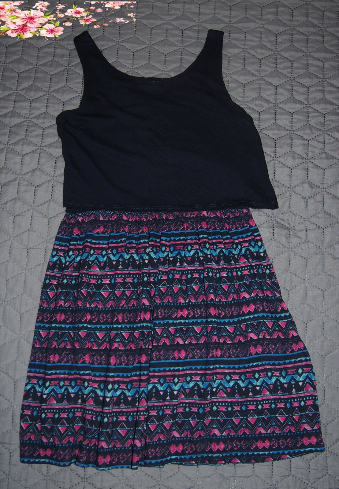 Párkrát oblečené šaty, ako nové, čierne a pásikavé, v páse prestrihnute, materiál: bavlna, šírka medzi pazuchami 33cm, dĺžka 73cm, plus poštovné