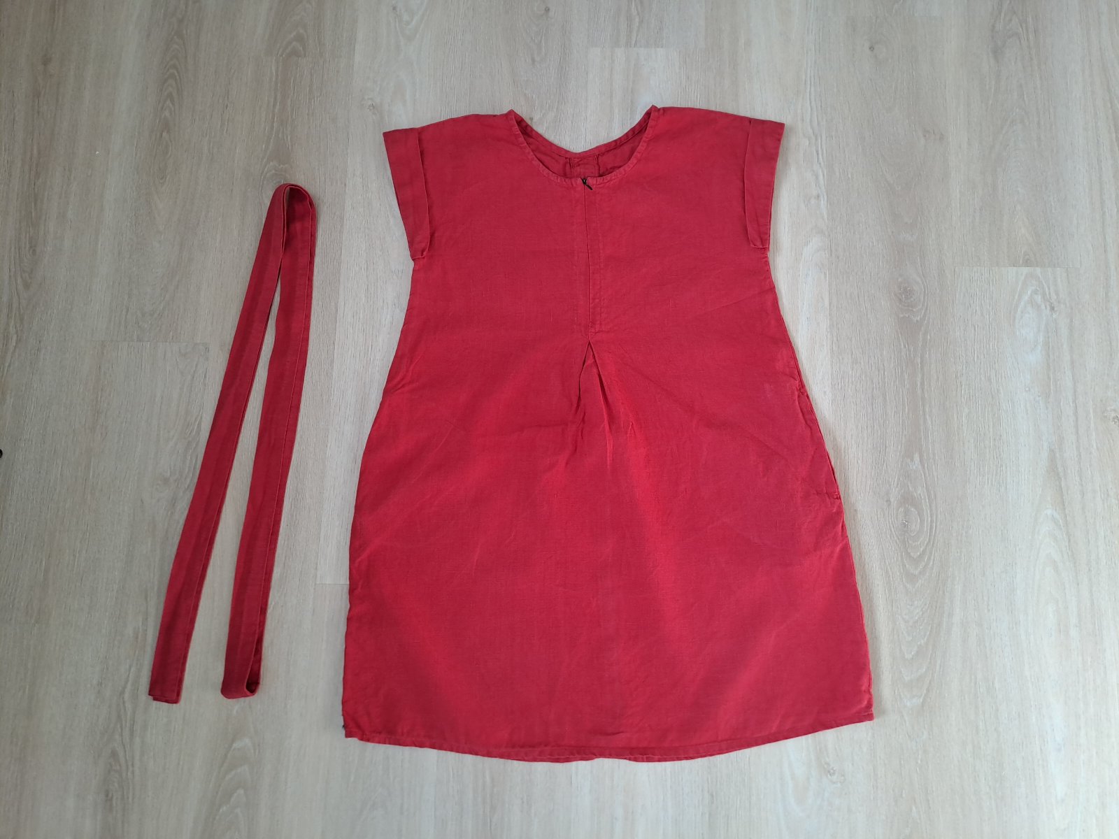 Ľanové šaty Sestrice Smart dress 03, farba love (červená), veľkosť XS/S.