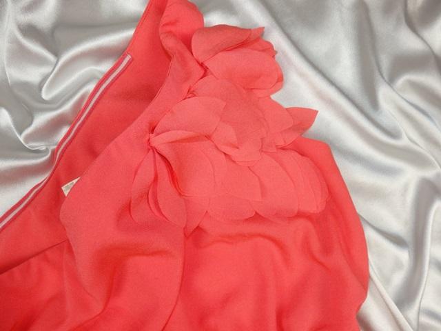 Luxusné letné šat marhuľovej farby, v páse gumka, silikónový pásik vo vnútornej časti horného lemu, podšité, materiál 100% polyester, super stav.