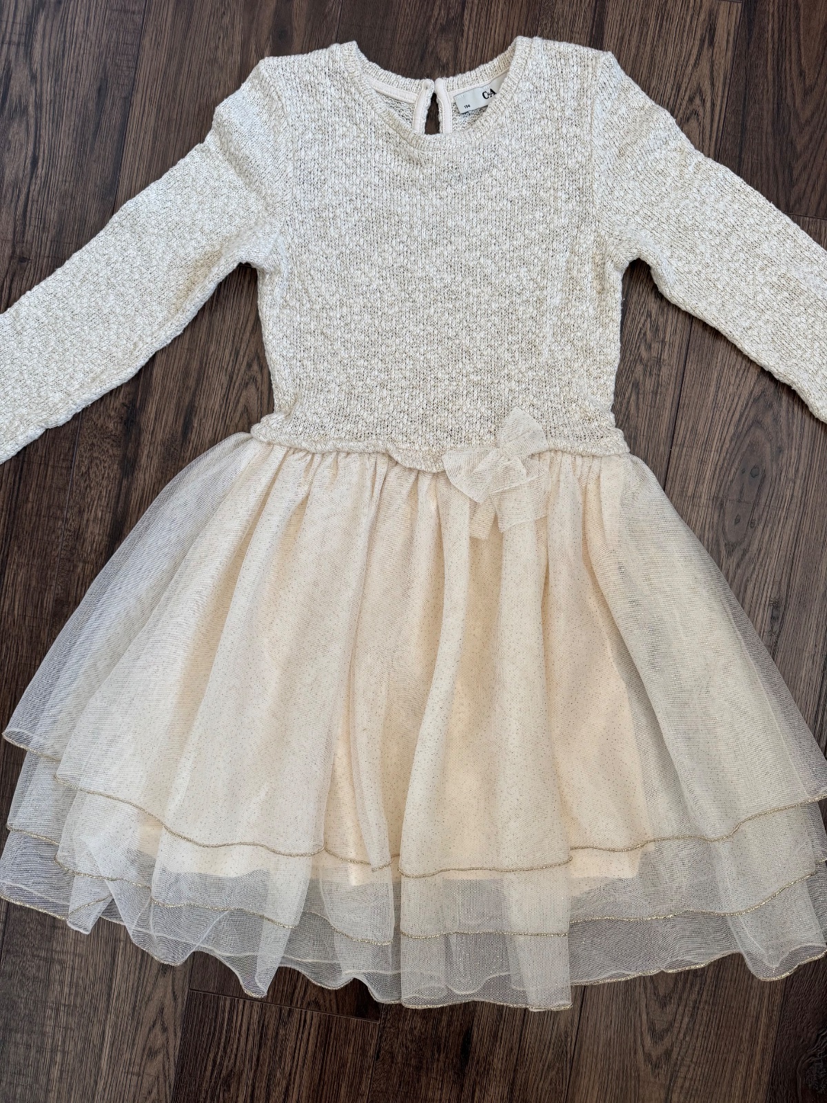 Ponúkam na predaj šaty plisove (smotanovej farby so zlatými bodkami) vzadu majú zapínanie na gombík. Vel.134. Cena 4eurá+ poštovné prevodom 3e