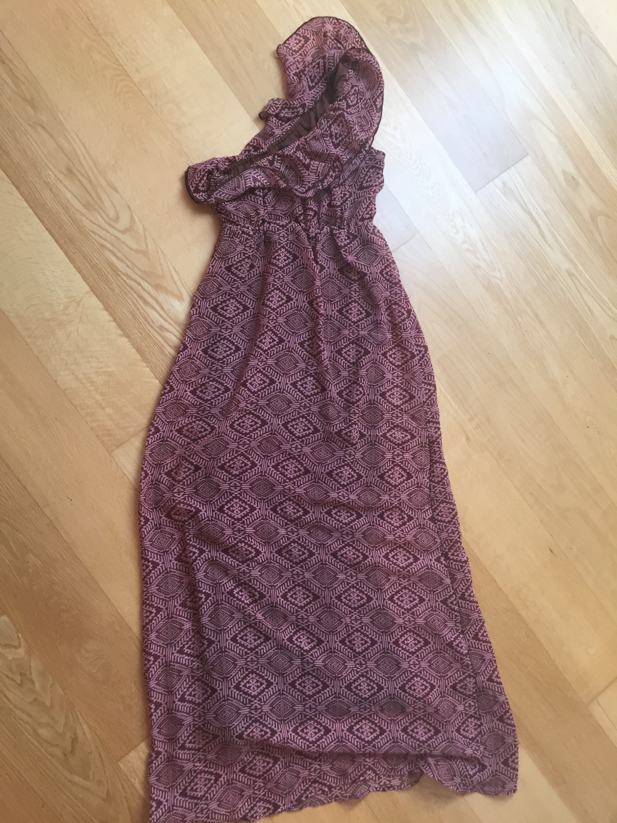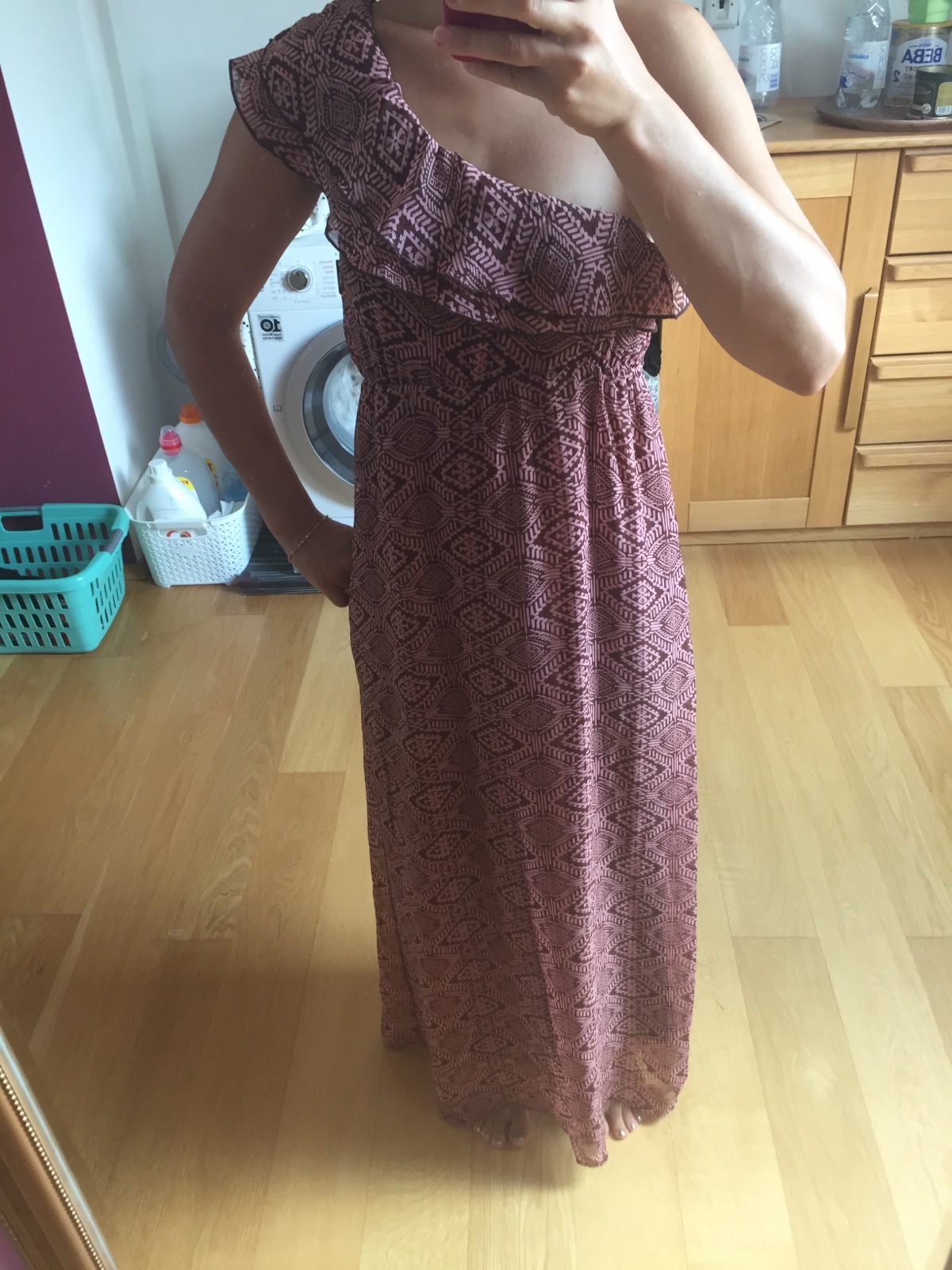 Staroruzove saty v kombinacii s hnedou.povedala by som ue elkost je uni..lebo v pase je guma ktora povoli a v bokoch su volne