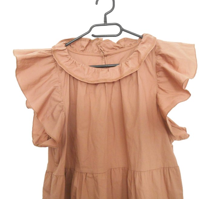 dobrý nosený stav, materiál: 97% bavlna, 3% elastan, farba škoricová, zapínanie na gombík na zadnom diele, bohato riasené