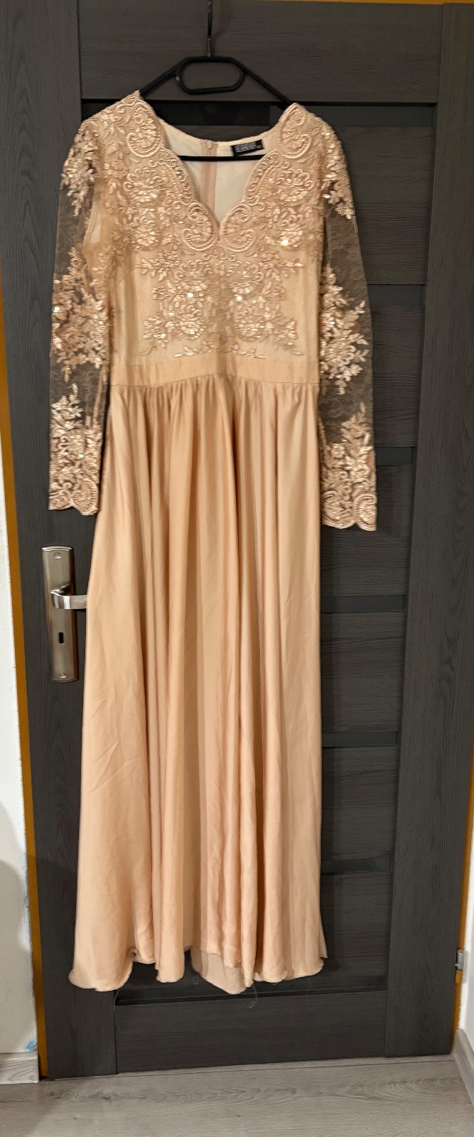 Krásné spoločenské šaty, dokonalej zlatej farbe. Raz oblečené, vyčistené, bez poškodení.
