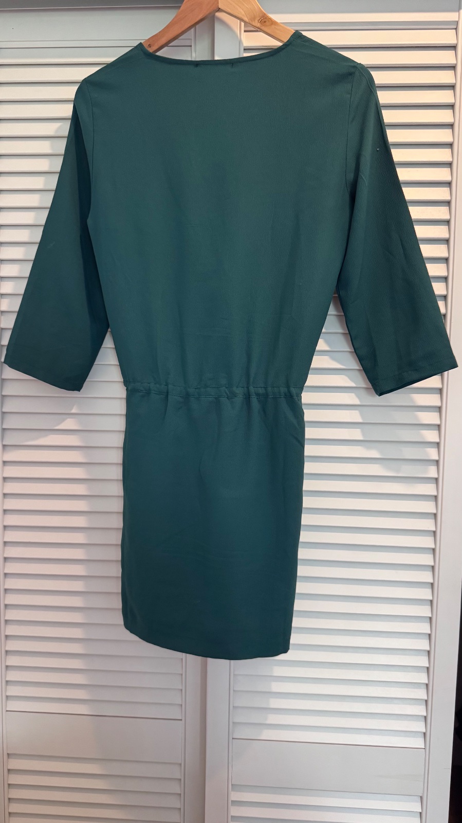 Veľmi dobrý stav! Dámske trojštvrťové košeľové šaty, zapínanie na gombíky, elastické, tenké, bez opasku. ROZMERY: dĺžka: 84,5cm, od pazuchy dĺžka dole: 64,5cm, dĺžka rukáv od krku: 56cm, dĺžka ruk...