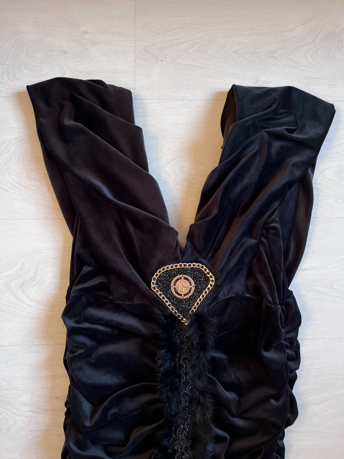 Krasne, luxusne saty s visackou, nazberkane, vpredu brosna a kozusinka. Vhodne skor na vacsie prsia, nakolko maju vacsi vystrih.