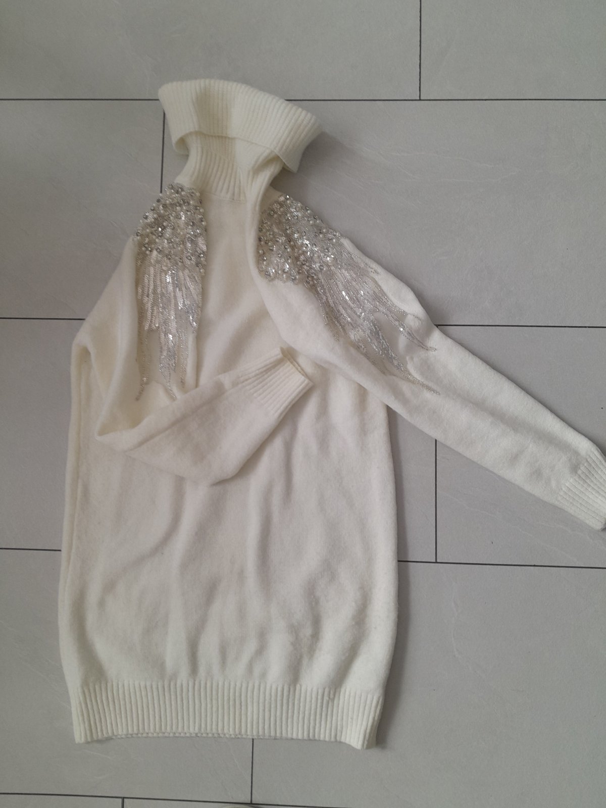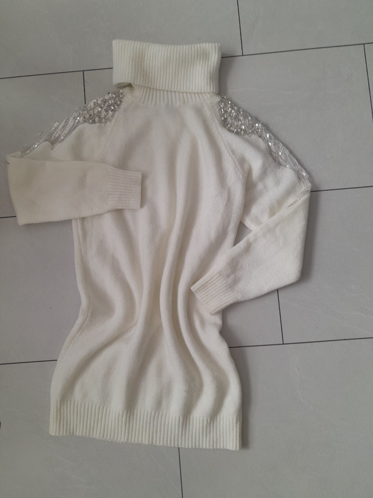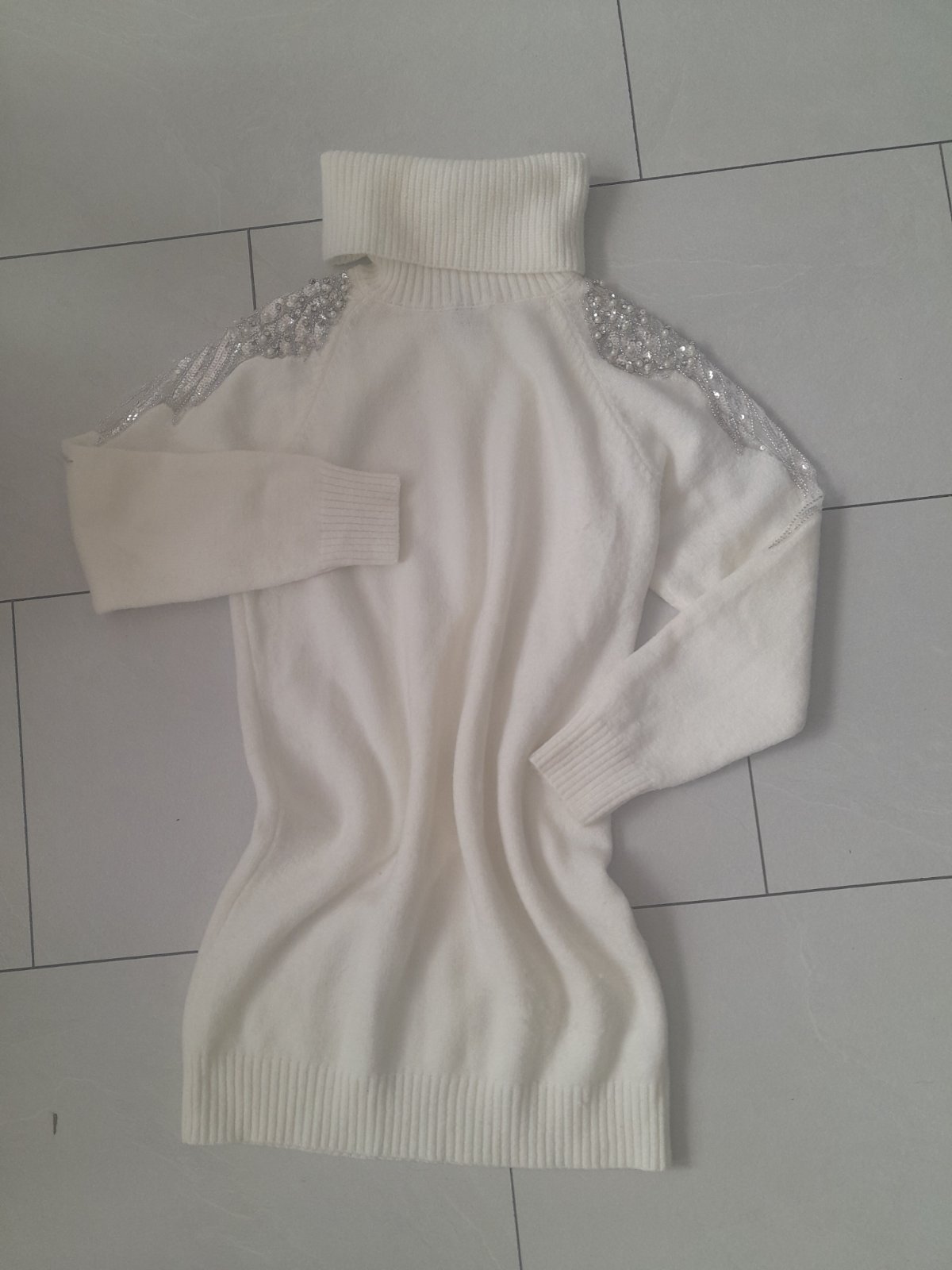 Predám krásne šaty alebo dlhší svetrík je kvalitný mäkký, vôbec nepicha ani neskriabe pohodlný, krásne detaily na rukáve na postave nefotim veľ.uni sedí na xs,s