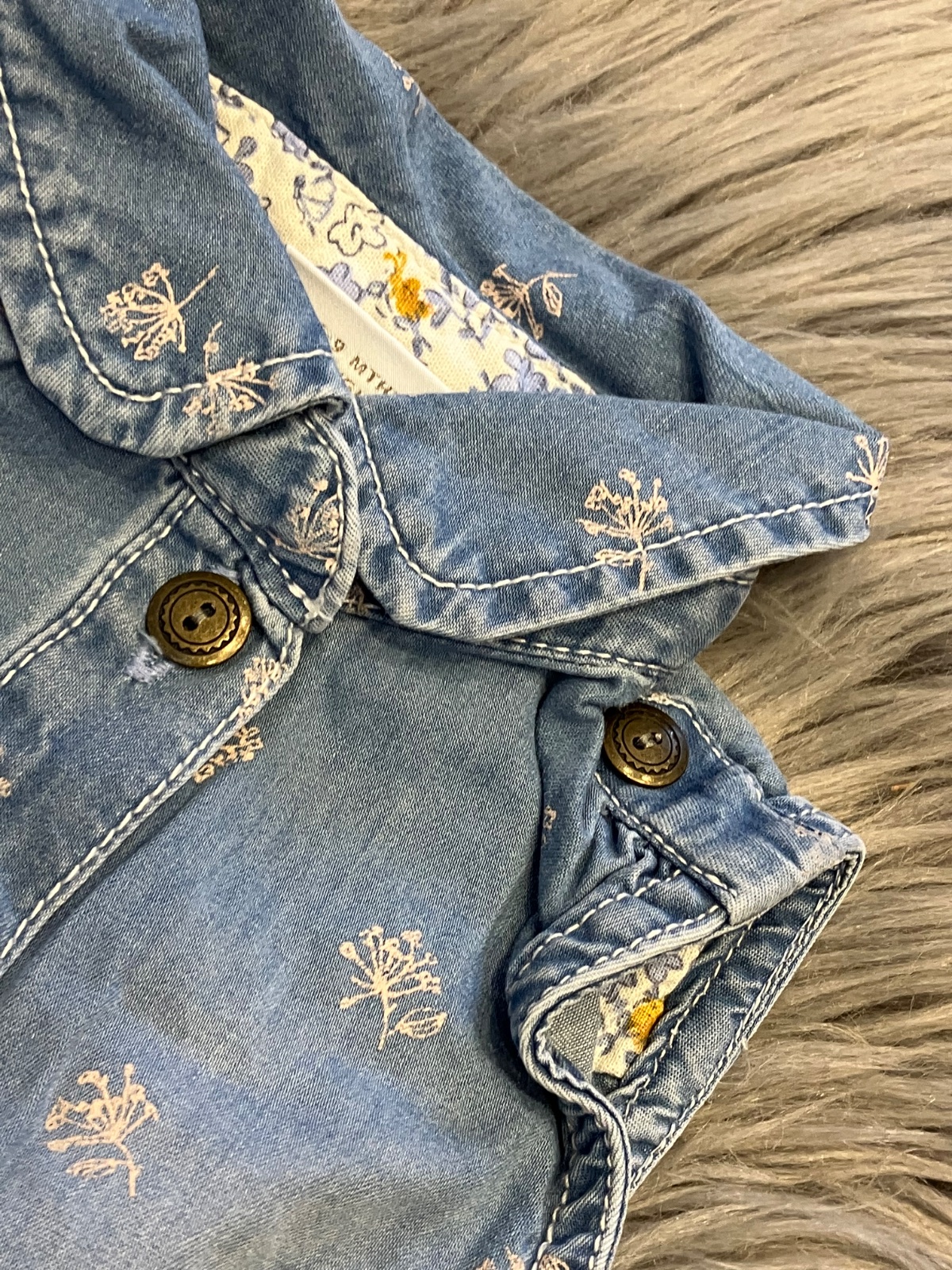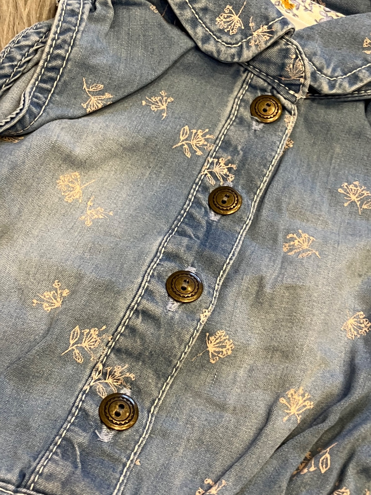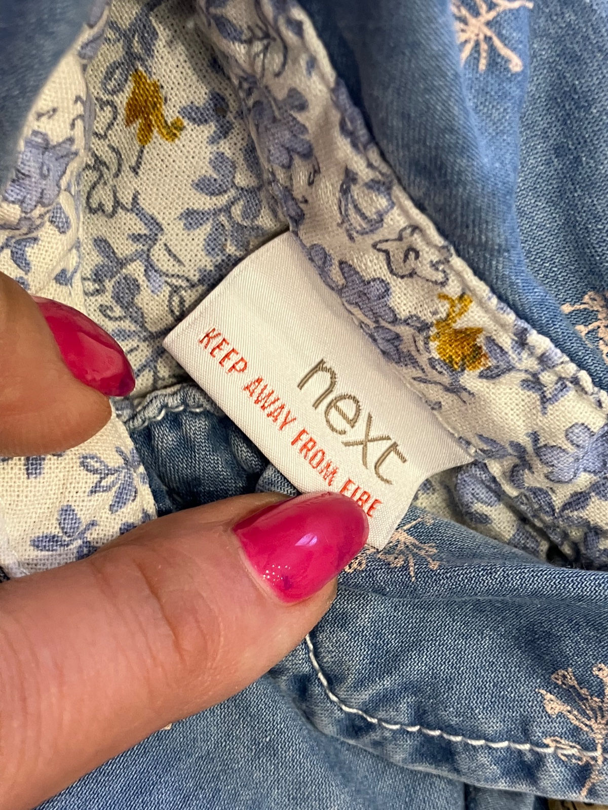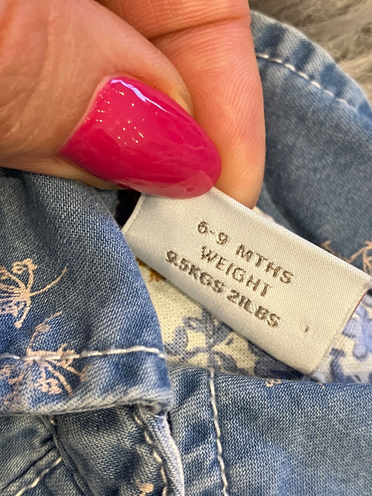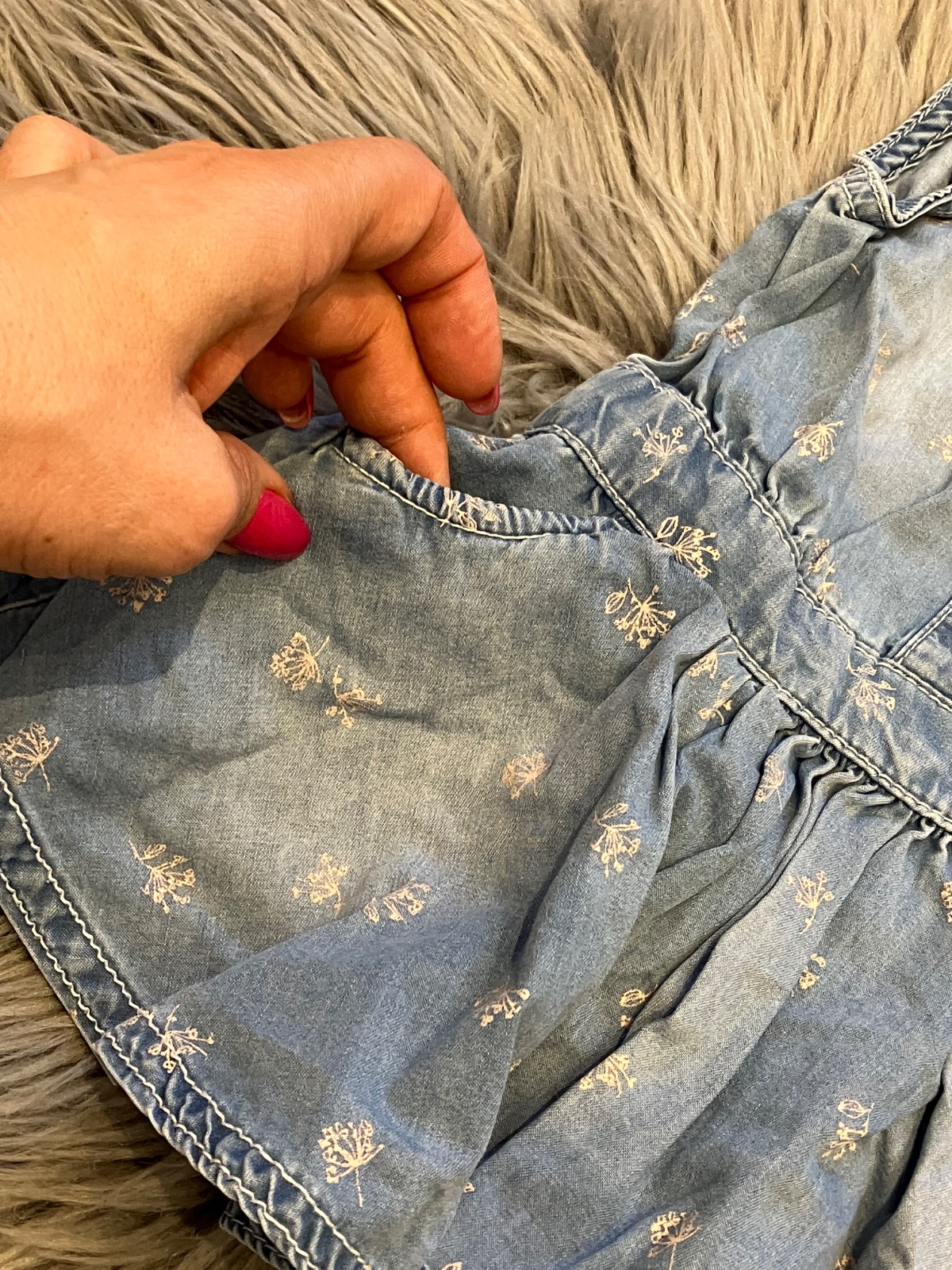 Dievčenské rifľové šaty bez rukávov, zapínanie na gombíky, dve bočné vrecká, jemne elastické, farba svetlomodro biela, materiál 100% bavlna.
