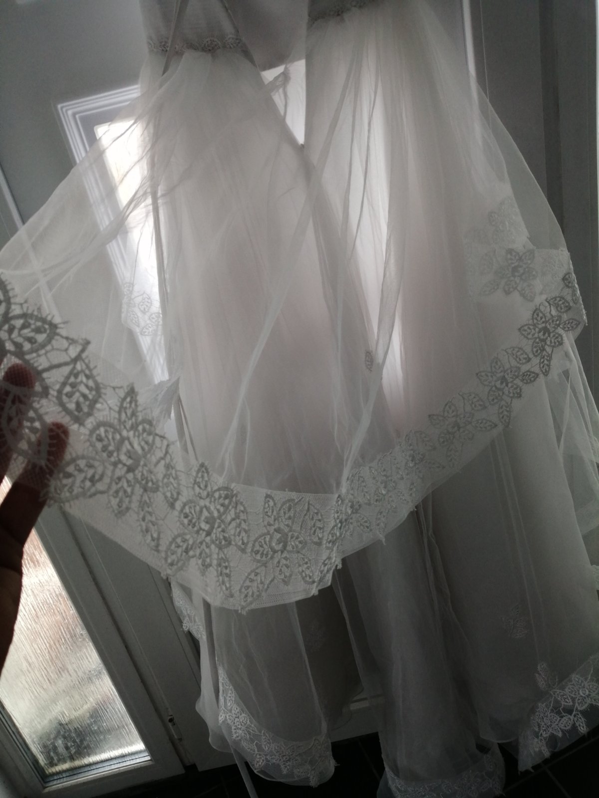 Predávam ich kamarátke, nebudem ani vypisovať co s nimi porobila, stali pre mna neskutočne peniaze (ona dala za ne cca700e) , kupovala ich v svadobnom salóne, šatám sa treba povenovat a odviesť veľa prace, kamarátka ma 175cm, boli nádherné, ale dobrá krajčírka ich vráti k životu, v prvom rade ich treba dat vyčistiť, sú na zips plus snurovacku takže sa prispôsobia xs-s aj m s menšími prsiami, najväčší problém je ze ten cipkovanosietovany materiál na vrchu roztrhla, o niečo zaprela, šikovná krajčírka tam dokáže dať cipku a opraviť ich aby opäť žiarili, pridá k tomu aj dlhší závoj, ktorý sa jej tiež podarilo zlomiť, drží keď ho prisponkujete, cena je prispôsobena ich stavu, môžete prísť vyskúšať alebo pošleme aj poštou