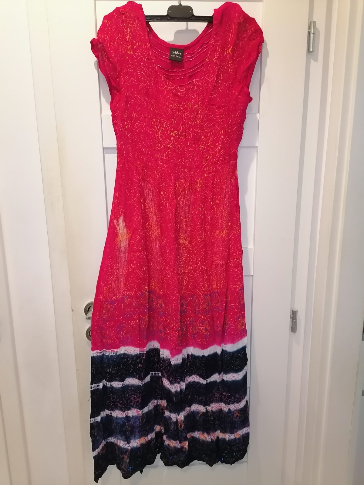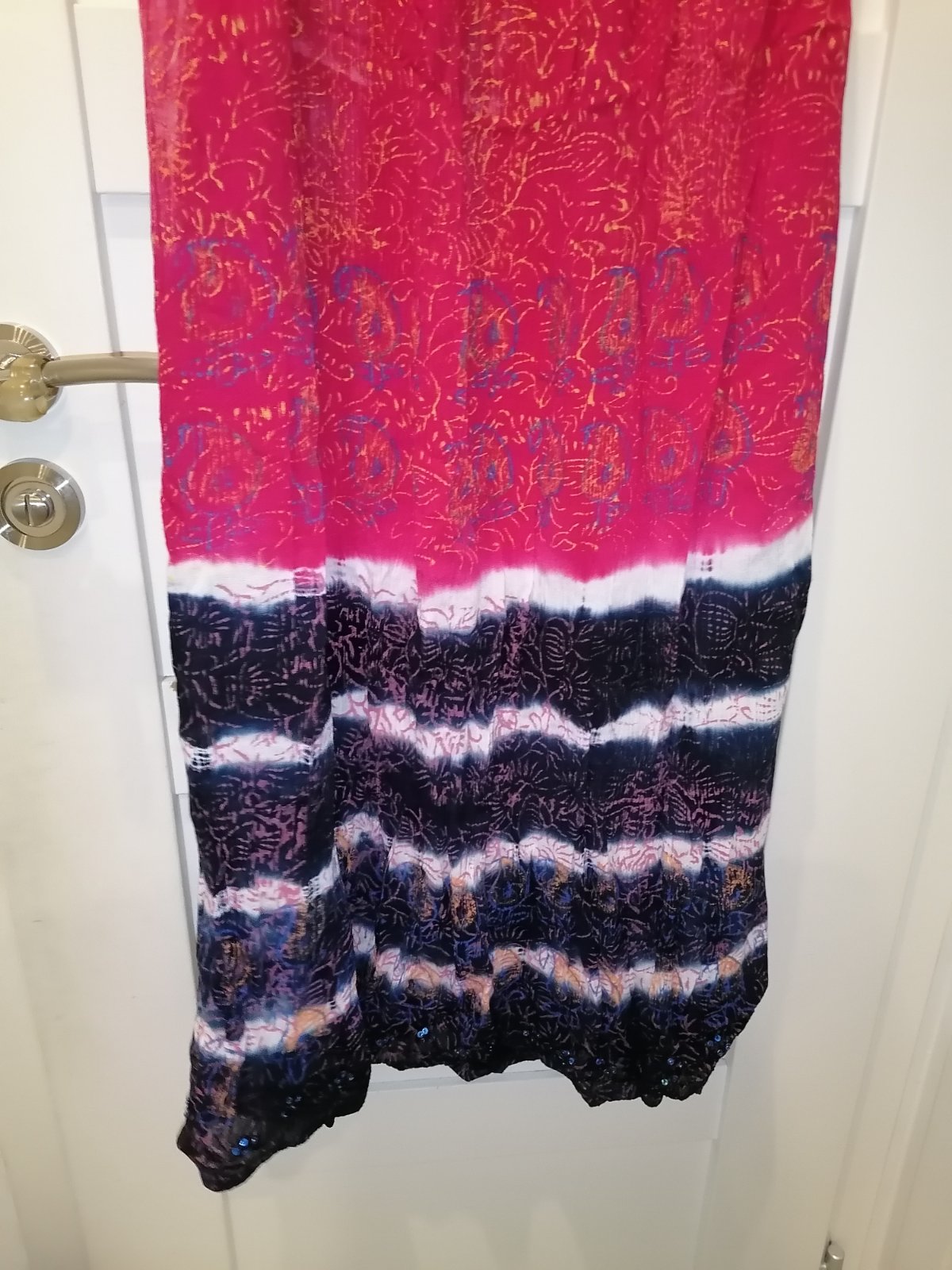 Predám dámske batikovane šaty, materiál 100% rayon, výrobca uvádza univerzálnu veľkosť, ja to vidím tak S, M až útle L vďaka gume gez prsia. Stav - ako nové, bezvládne. Na spodu zdobené filtrami a korálkami. Osobný odber v Bratislave alebo zaslanie poštou plus poštovné. Posielam aj Packetu.