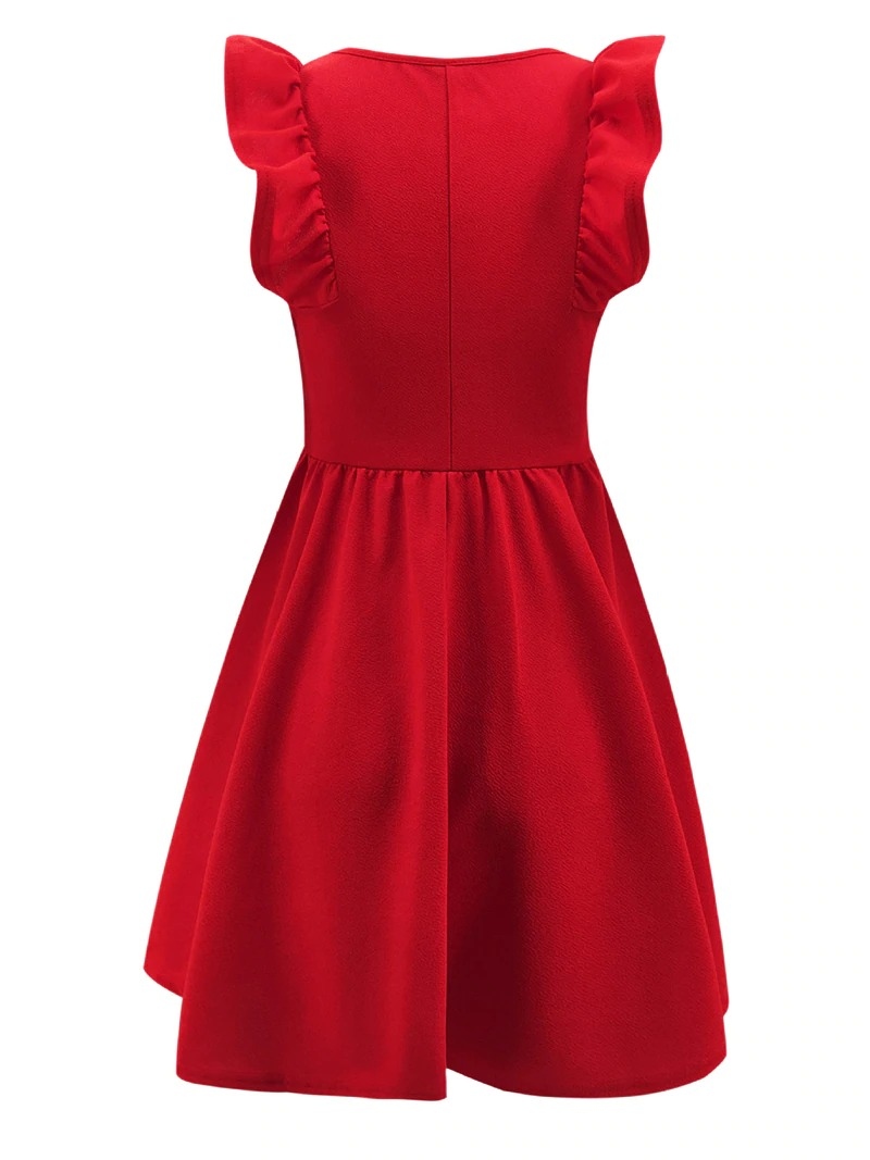 krasne cervene elasticke saty s volanikmi na rukavikoch. saty su z elastickeho materialu, nie bluzkovina. modelka ma pod satami spodnicku, v pripade ze mate zaujem o rovnaky efekt je nutne nosit pod satami spodnicku . velkost S ihned k odberu