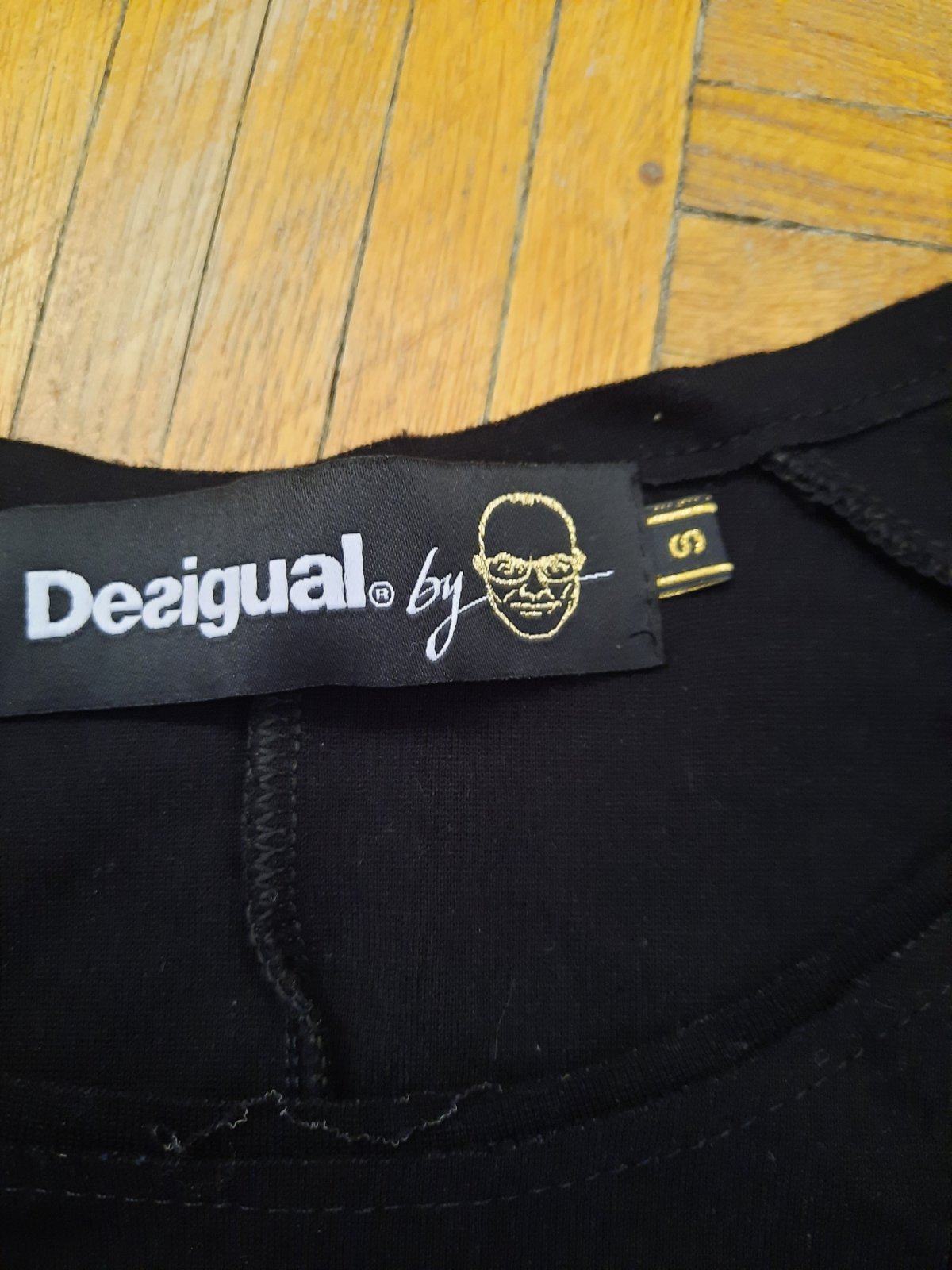 Predám šaty-tuniku Desigual vel. uvedená 13-14 ale aj na S-XS zadný diel dľžka 82 cm, šírka cez prsia 43 cm, rukáv 19 cm, spodok aj rukávy do gumičky, príjemný prispôsobivý materiál, pekné far...