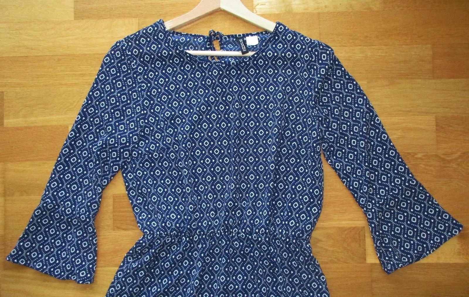 1x oblecena, ako nova tenka sifonova tunika alebo minisaty. Padava latka. V pase jemna gumicka, na 3/4 rukave, dlzka po pas 39 cm, dlzka od pasa dole cca 45 cm, pas 2*33 ale natiahne sa az o 48 cm. sirka pod pazuchou 48 cm. Mne je zial uzka.