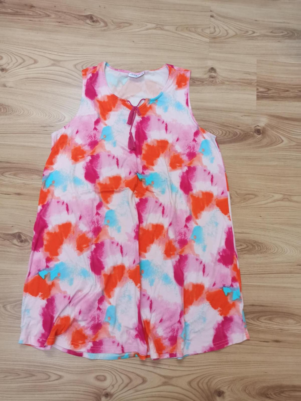 Pekne letne bavlnenne nepodsite saty,top stav D-107 cm Prsia do 57cm vzadubsu riasene Boky 67cm idu mierne do ačka Kod 3m