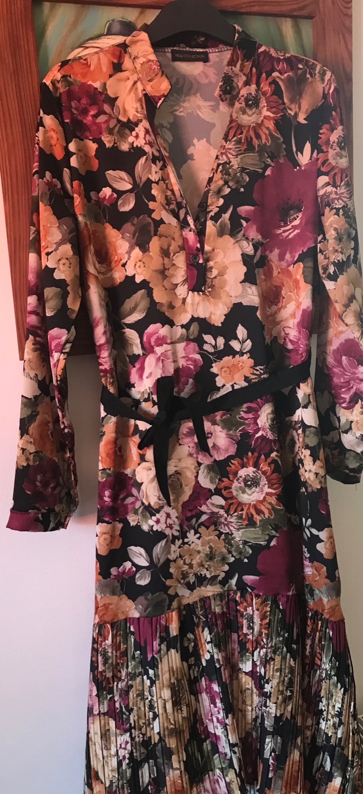 Predám krásne,ľahučké,veľmi pekne sediace saty.Spodna časť plisovana,spredu dĺžka tesne pod kolena,vzadu trosku dlhšie.