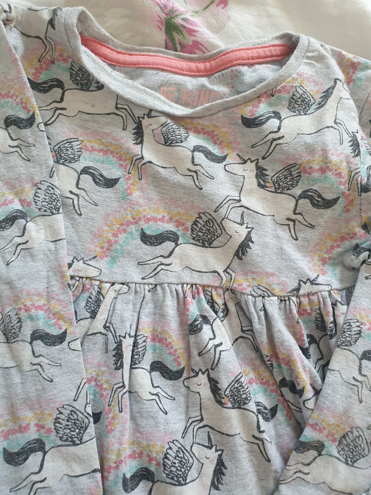 Šaty 98-104. Dajú sa nosiť aj dlhšie, ale rukáv bude potom 3/4 😀