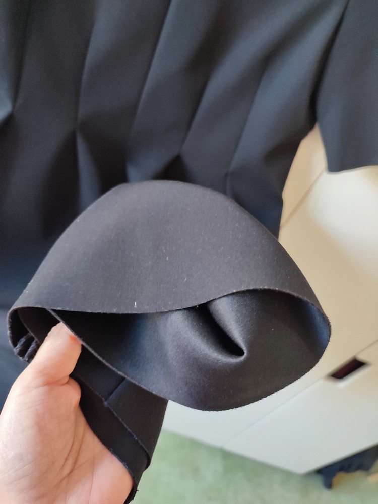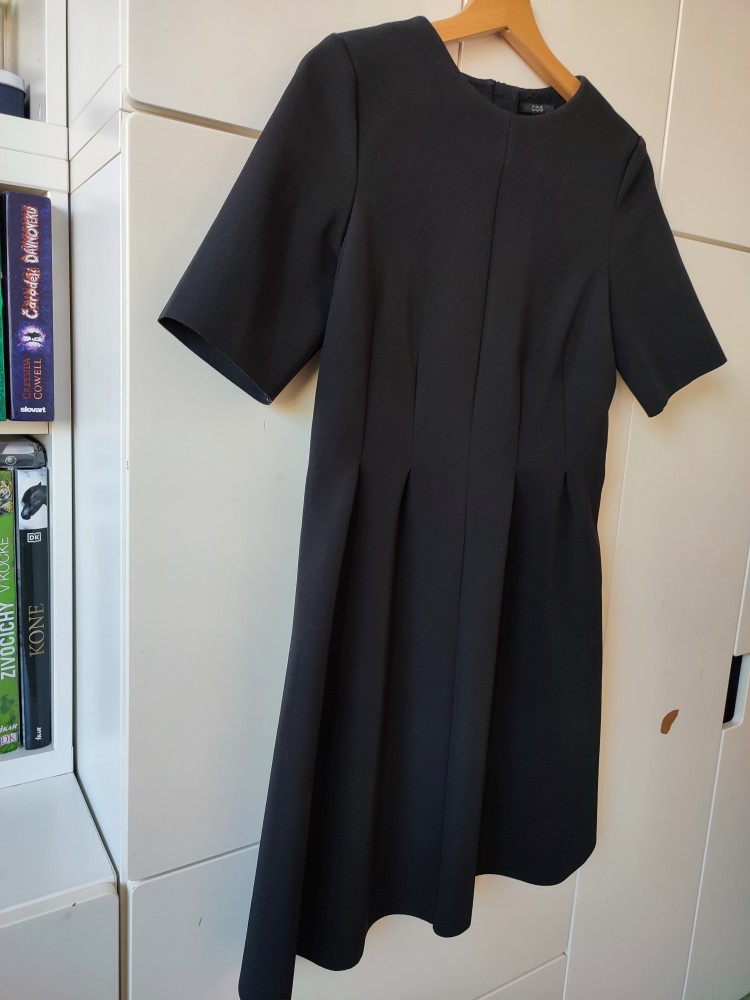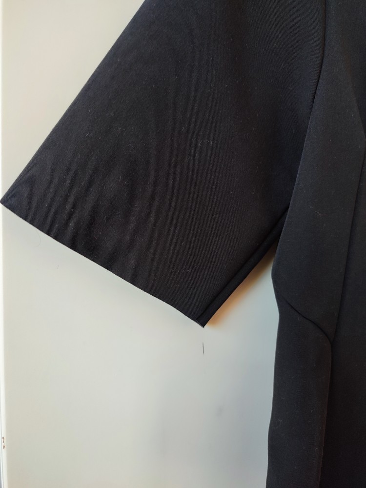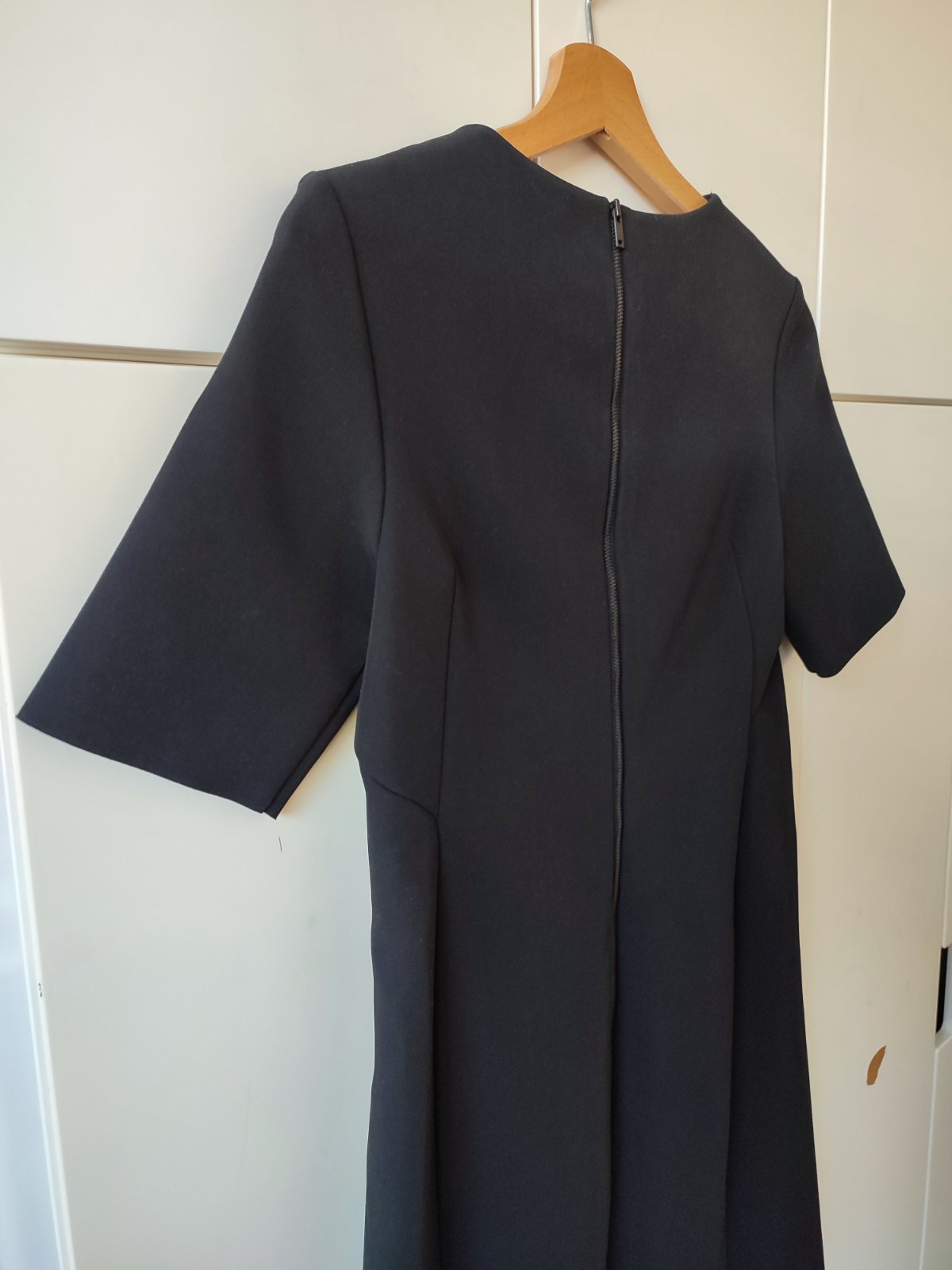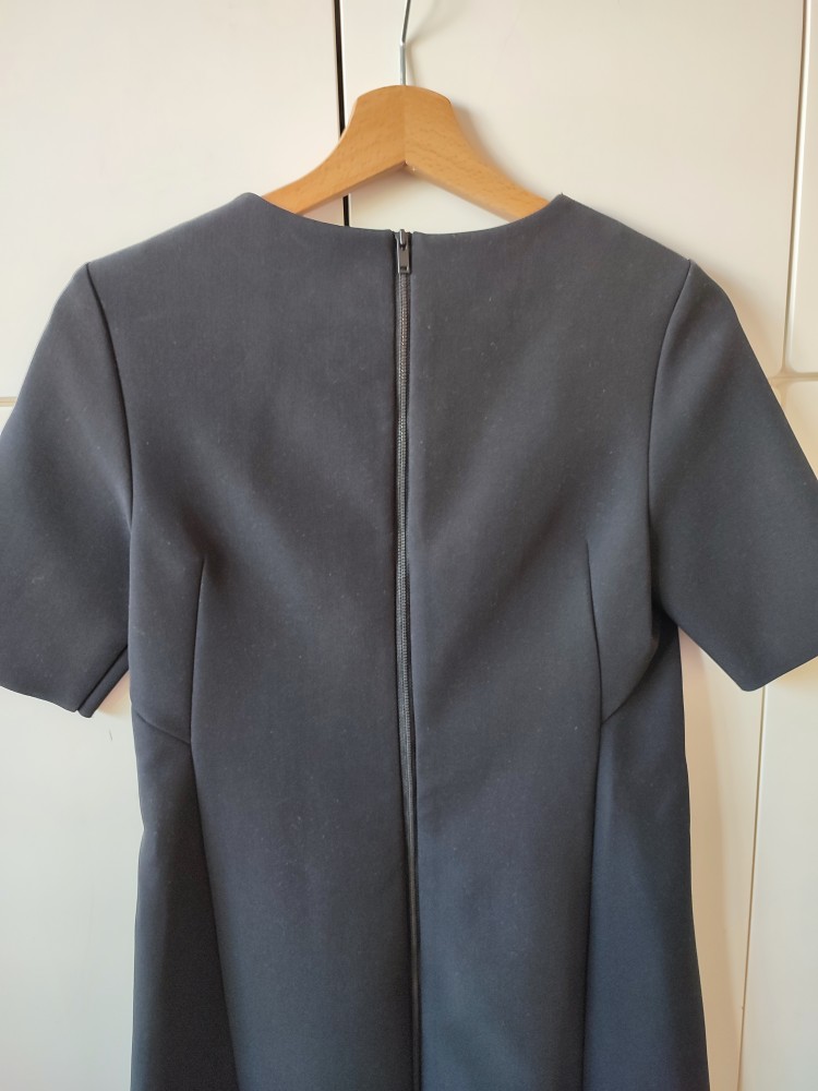 šaty z materiálu podobného neoprénu, super držia tvar, sukňa krásne stojí. precízne ušité. vzadu zips po celej dĺžke. sú mierne elastické, pekne sa prispôsobia postave. mne sú trochu užšie v pleciach, odporúčam na veľkosť 36 ako je písaná. bez akýchkoľvek poškodení, oblečené dva krát. farba je pekná čierna, foto skresľuje.