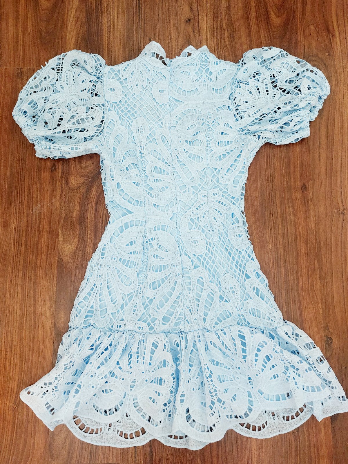 Nádherné volánové modré šaty,pre akúkoľvek príležitosť ,bez chyby Dĺžka- 87 cm,šírka- 88 cm, pás-70 cm