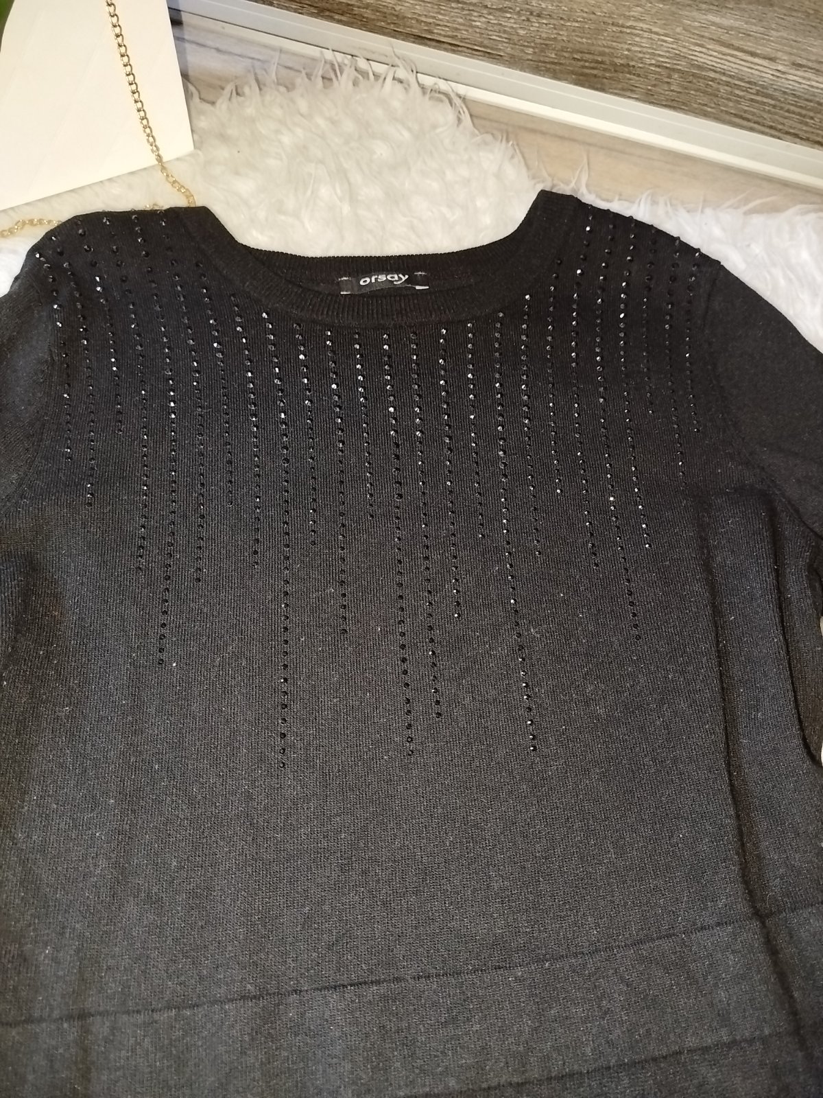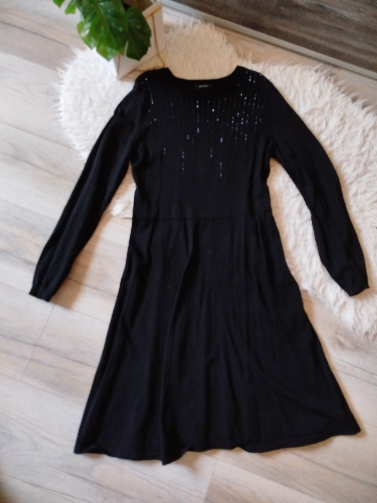 Nosené, ale ešte v dobrom stave, mimizmolky na sukni, upletove to vhodné na jar/jeseň , vhodné i do práce, vrchná časť zdobena kamienkami