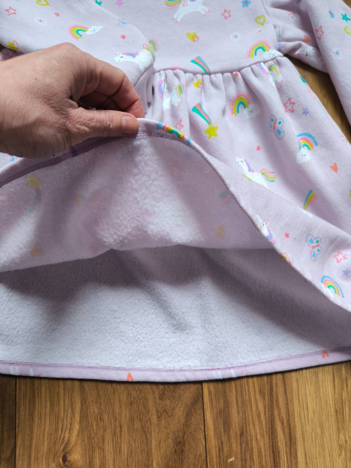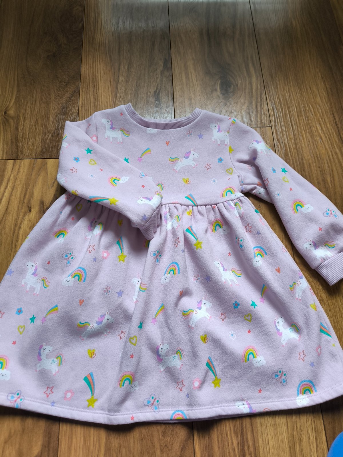 Na predaj nosená teplá tunika z teplákoviny. Značka F&F. veľkosť 110. Na 1 rukáve sú 2 zašité malé dierky (posledná foto), okrem toho žiadne nedostatky.