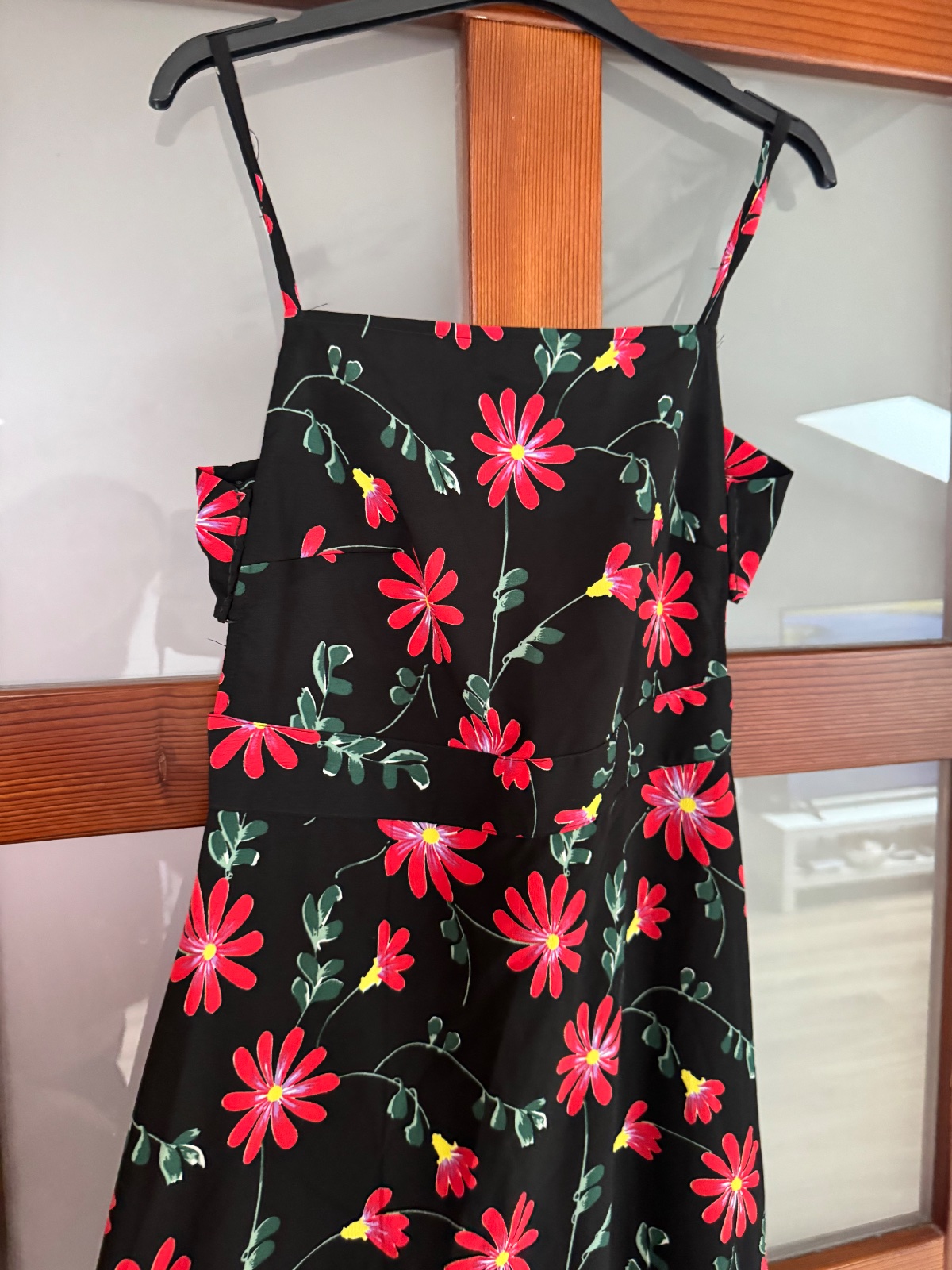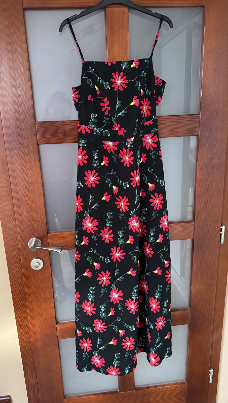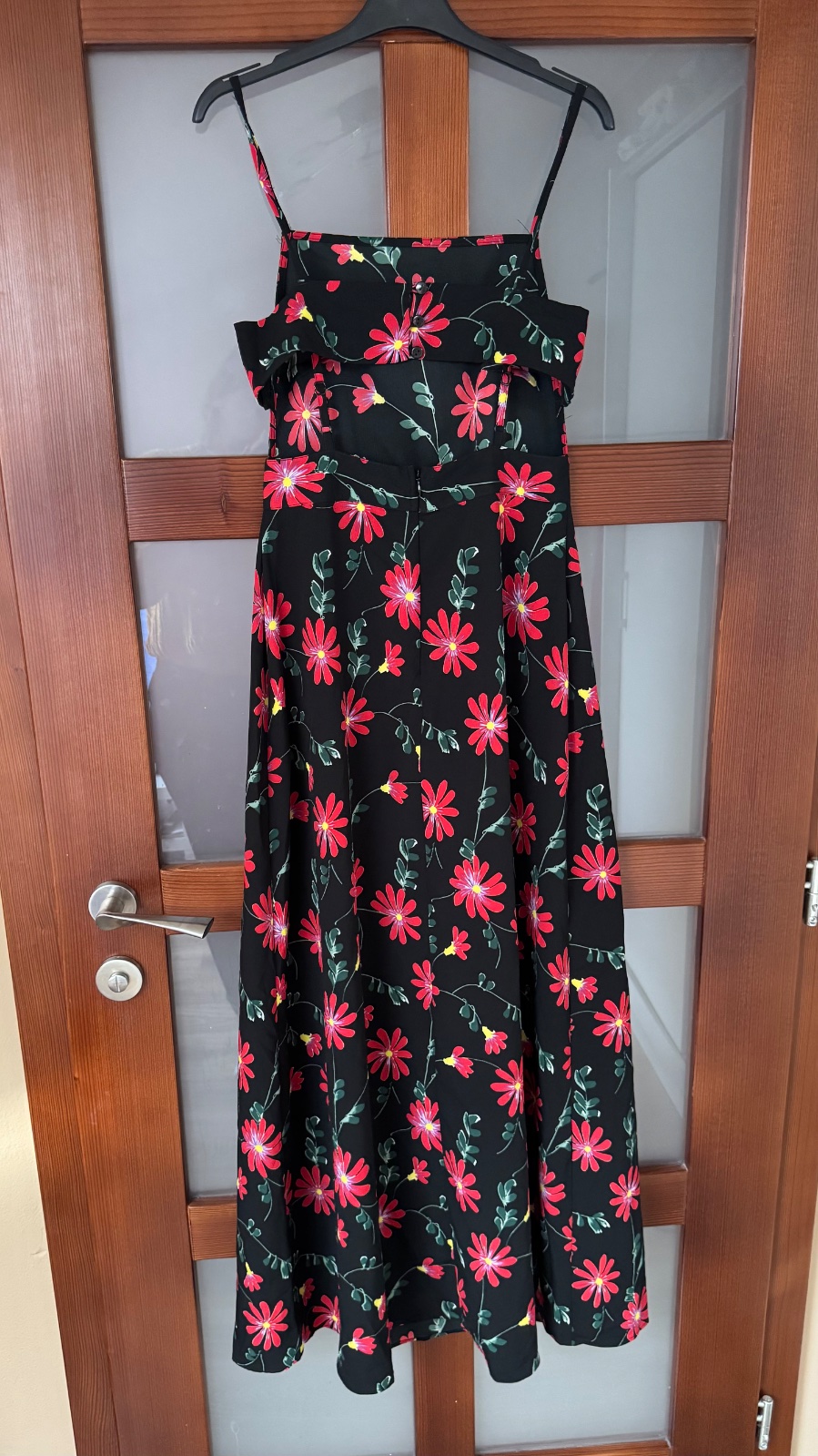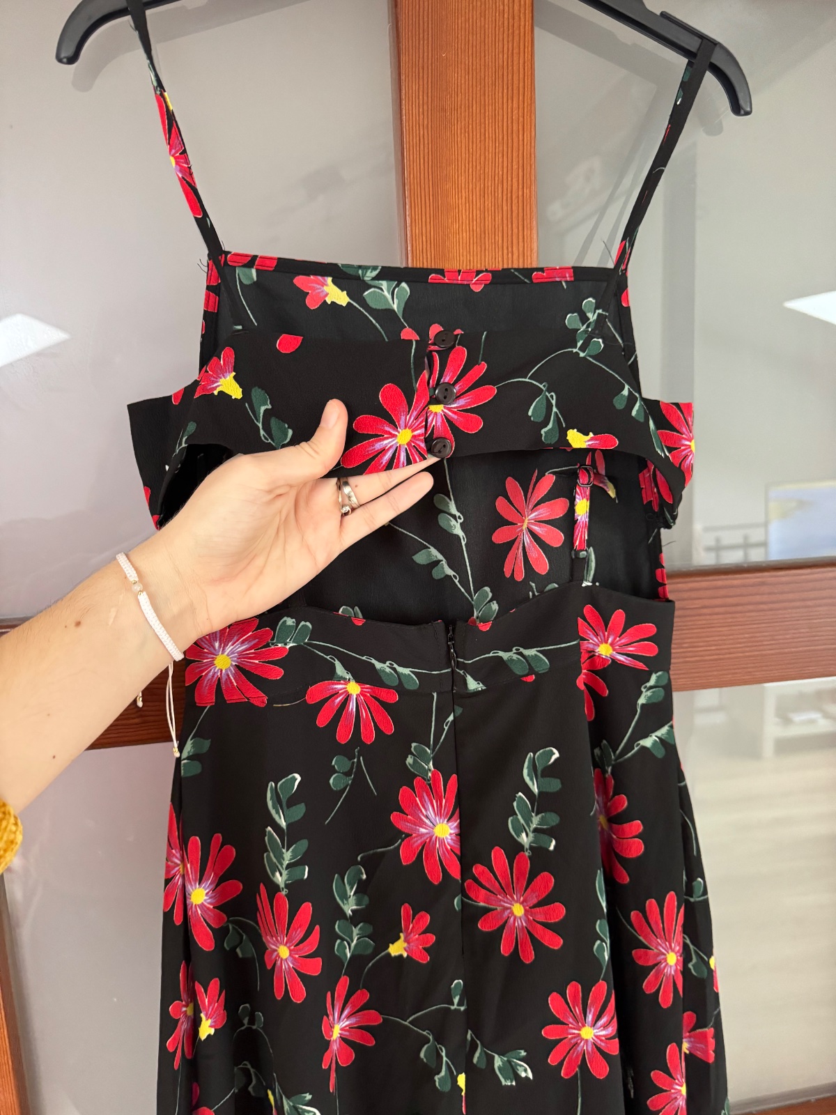 Predám čierne šaty s kvetmi, vzadu veľmi pekne riešene vid foto. Veľkosť XS