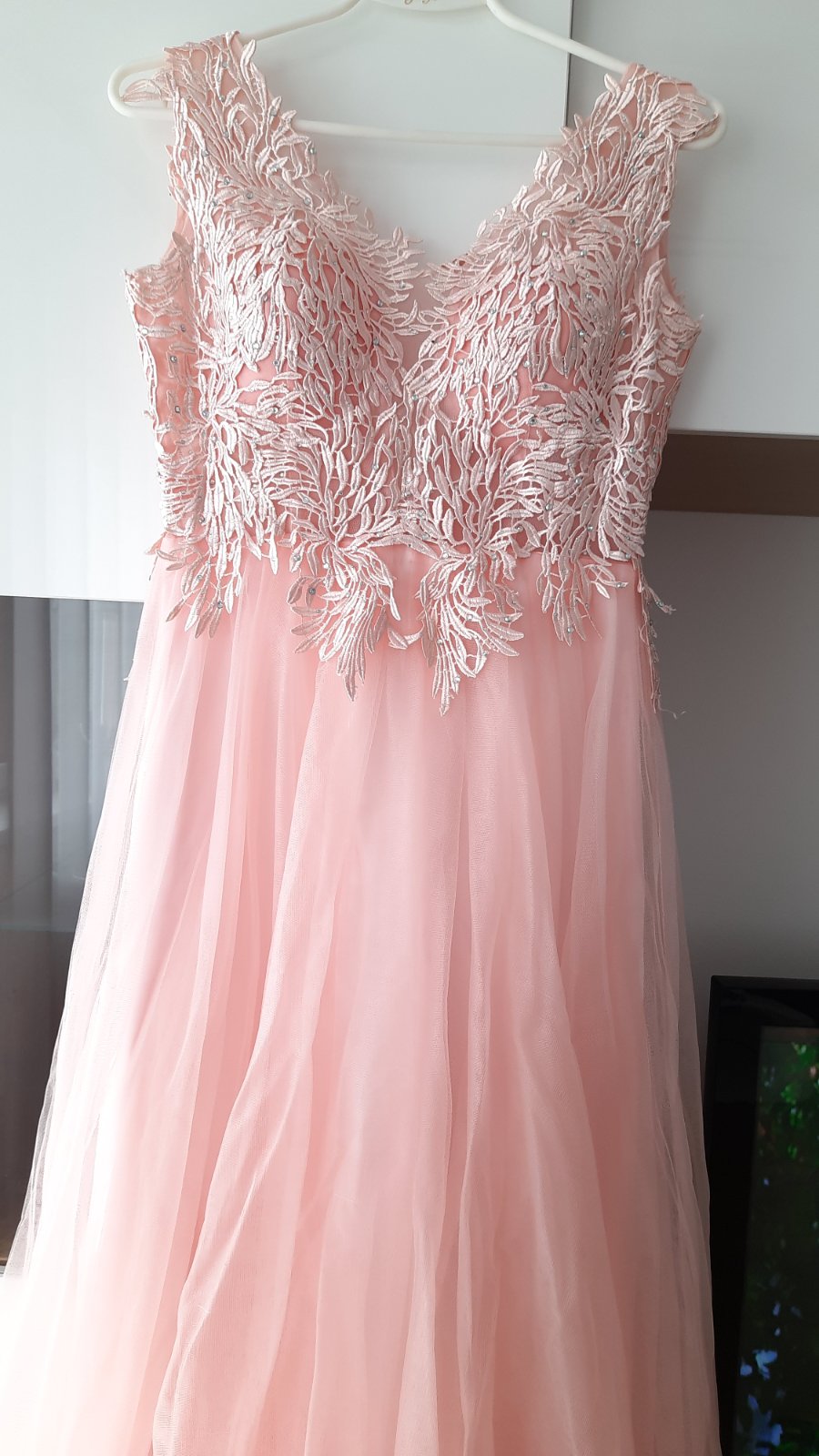 Predavam krasne dlhe svetloruzove saty velkost S za 60eur, objednané z Glossy.sk. Povodna cena 114eue. Oblecene len raz a su uz vycistene z cistiarne. Prikladam foto z realu.