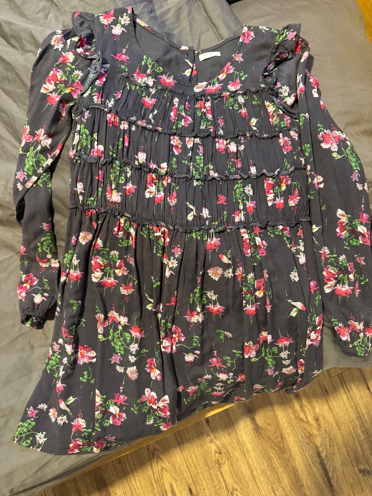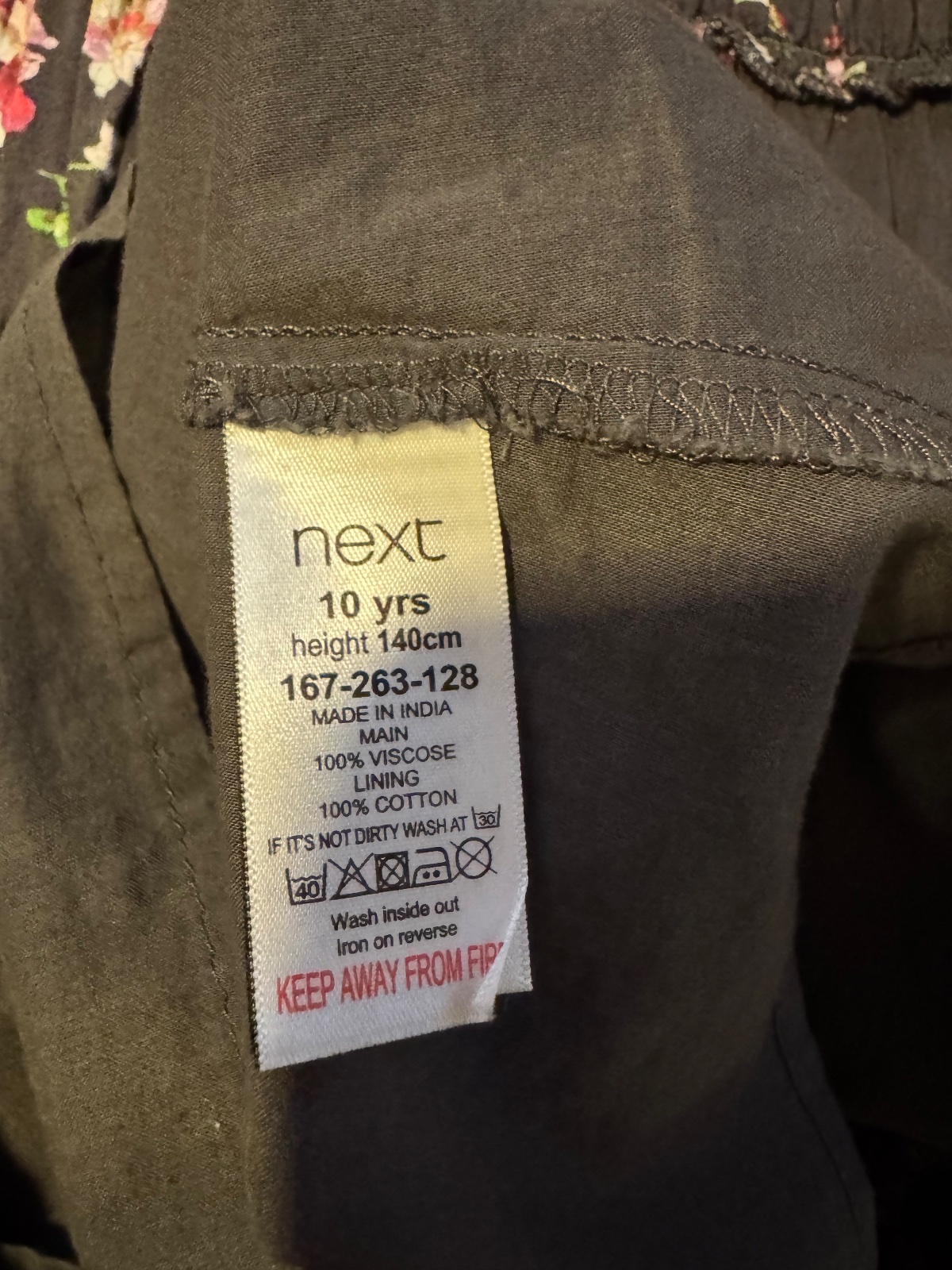 SKLADOM Ľahké sviatočné šaty Next, úžasný bielo-čierno-ružový vzor, padavá látka, blúzkový vrch s límcom, sukňa plisovaná, 100% polyester. Veľkosť na cca 11-12 rokov (podľa postavy - výška 146-152...