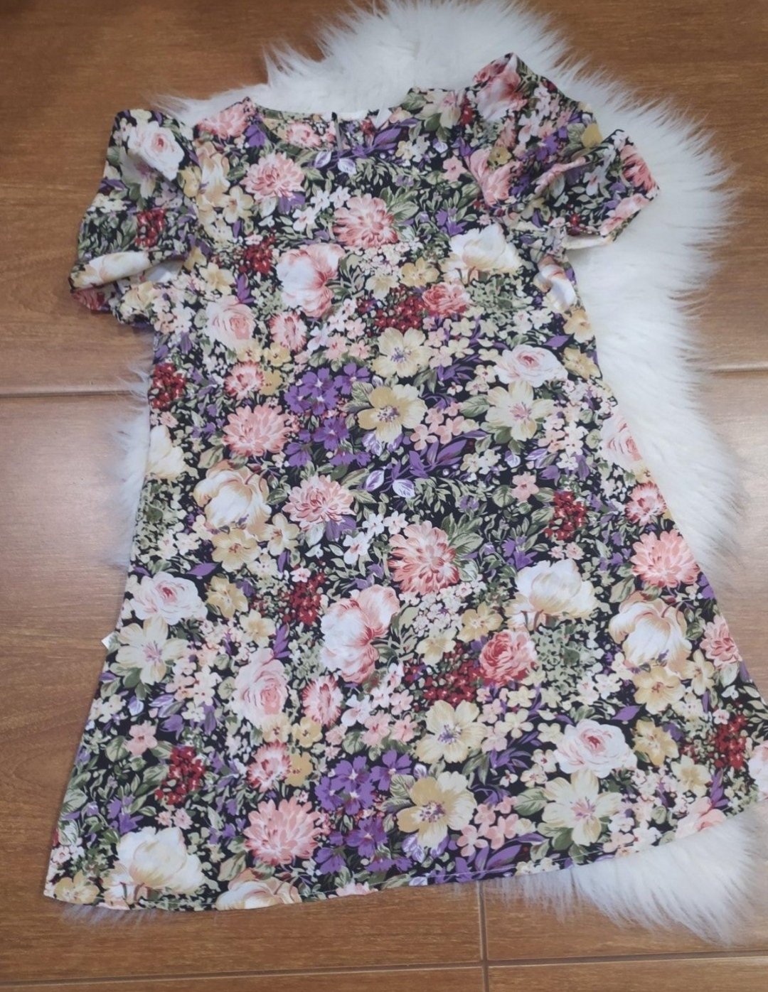 Ľahké letné šaty s kvetinovým vzorom, doplnené mašľou. Materiál je príjemná ľahká bavlna a sukňa je točivá.