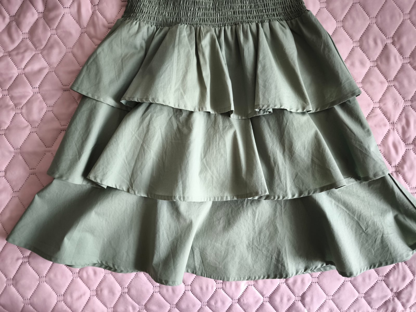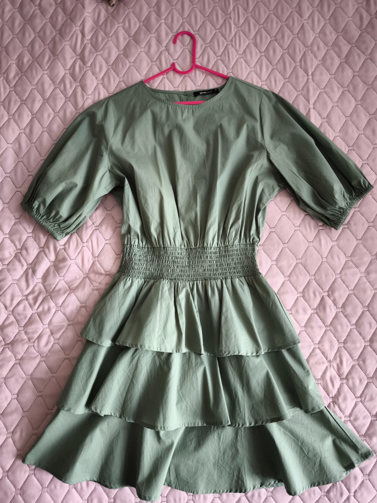 Krasne kvalitne saty, nazberana suknicka, puf rukavy, vzadu gombik. Bavlna.