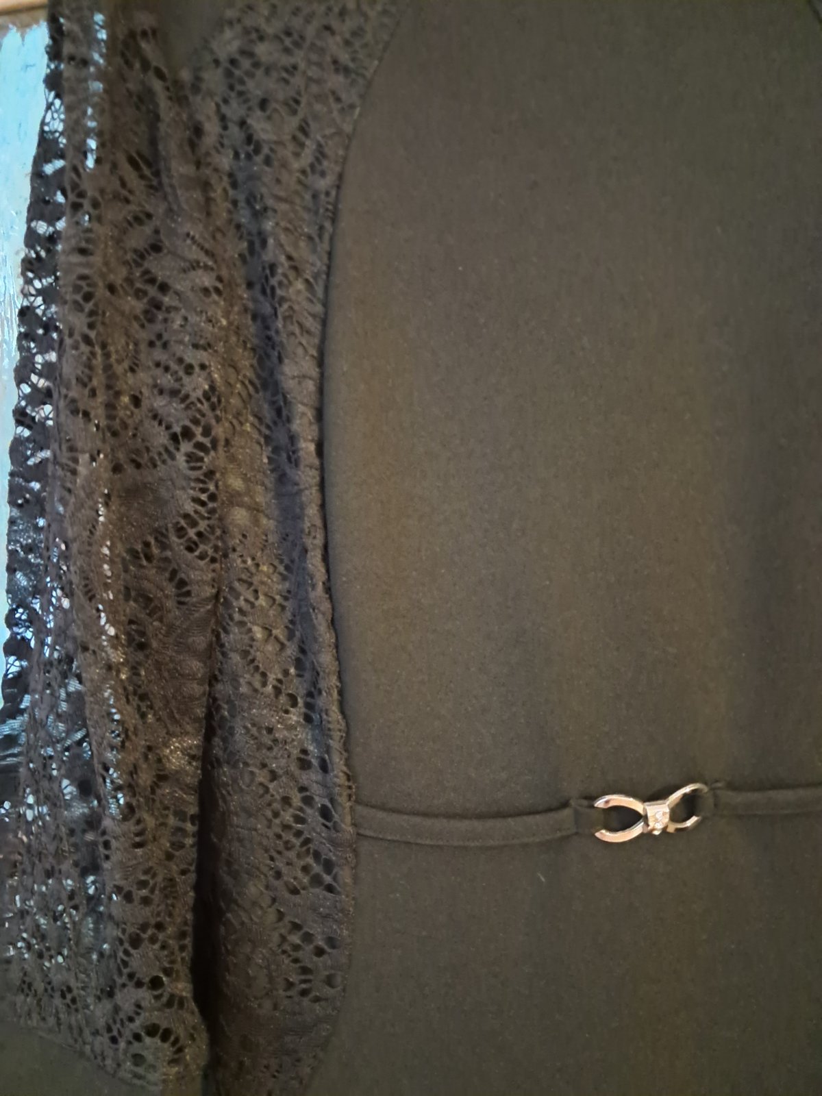 Elegantné čierne šaty, rukávy a bok šiat vložená krajka. Boli raz oblečené, takže stav ako nové.