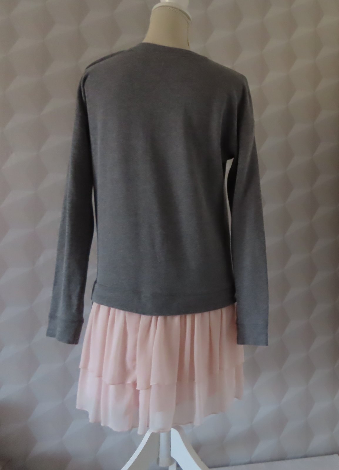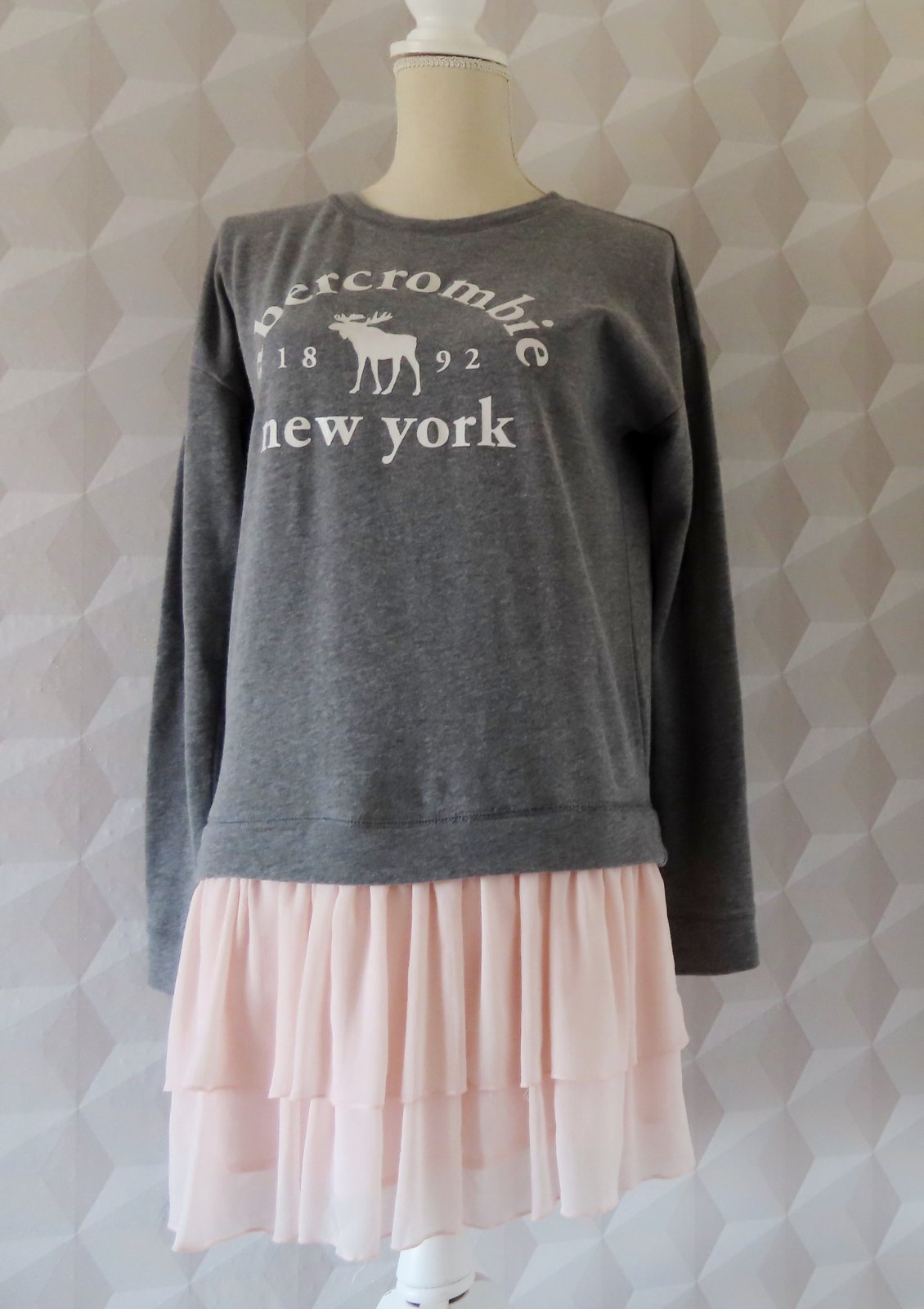 Mikinkové šaty s vrstvenou sukničkou - Abercrombie & Fitch, veľkosť označená 15-16r, sedia na XS - rozmery: dlžka 85cm, pod pazuchami 2x50cm, rukáv od krku 72cm, od pleca 63 a od pazuchy 48cm