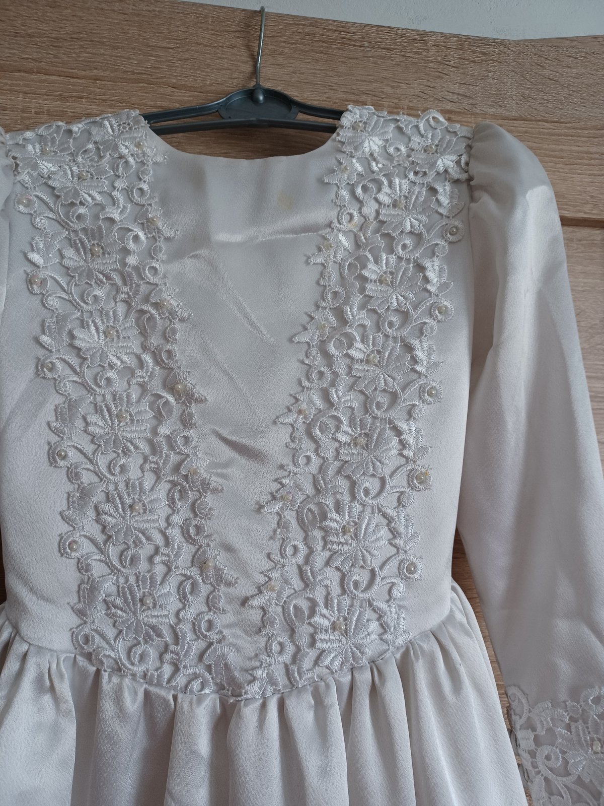 Šaty na príjmanie. Malý fliačik vid foto. Neskúšala som oprať. Sú zo spodu zájdené od prachu zo zeme. Neprala som ichnlebo by som ich mohla zničiť. Treba ich dať do čistiarne a budú akk nové. Je k nim aj kruh,aby boli široké. Veľkosť nie je napísaná, ale tak ako chodia na príjimanie dievčatá. Len som si vymyslela. Teba vyskúšať,alebo pomeriam v prípade záujmu.