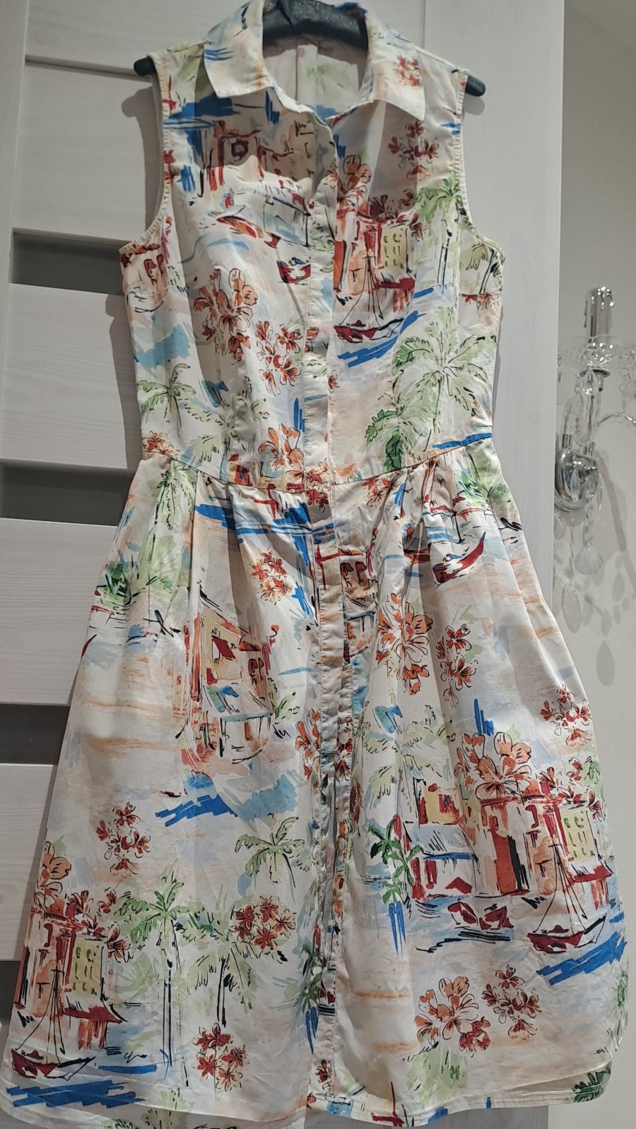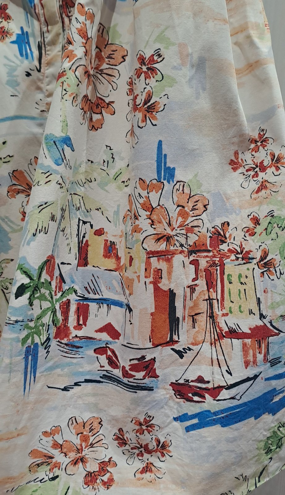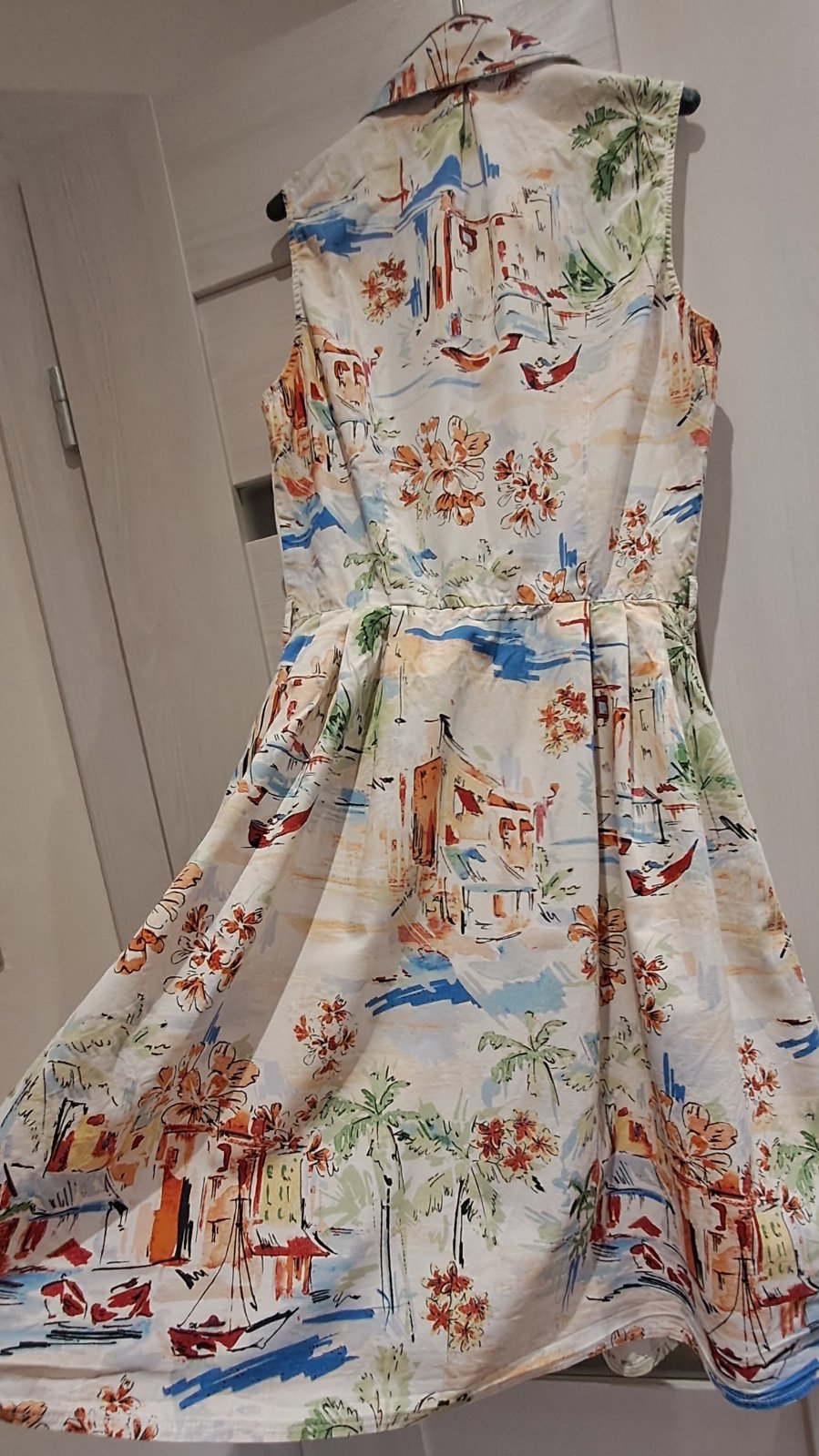 Bavlnené šaty "košeľového" strihu. Skryté zapínanie v prednej časti po celej dĺžke. Bavlnené, vzdušné... na leto ako stvorená 👌 Majú nádherný "morský" talianský motív 🌊🌴⛵️☀️🏘🚤🛶🌺