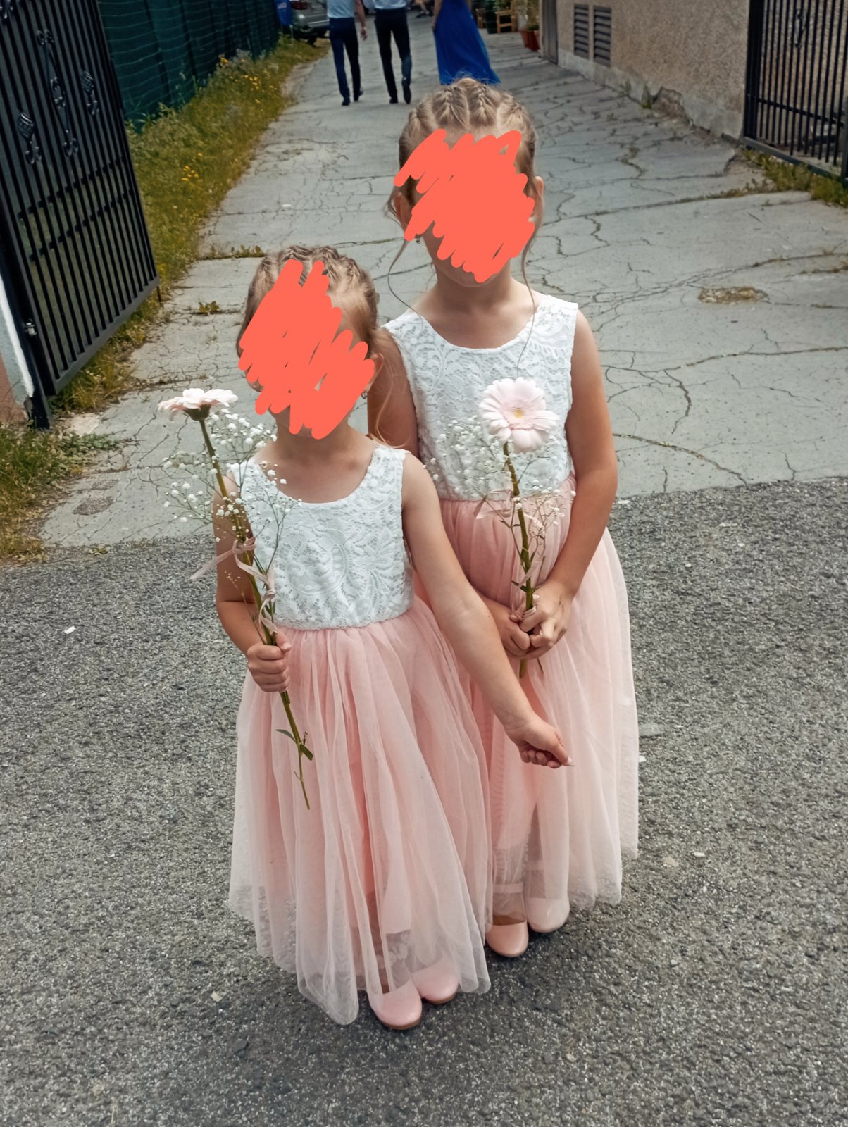 Krásne. Použité len príležitostne - svadby. Veľmi vďačné. Veľkostne sa dajú využiť aj 4-5 rokov. Odporúčam osobný odber, pozrieť si ich. Kupované v USA