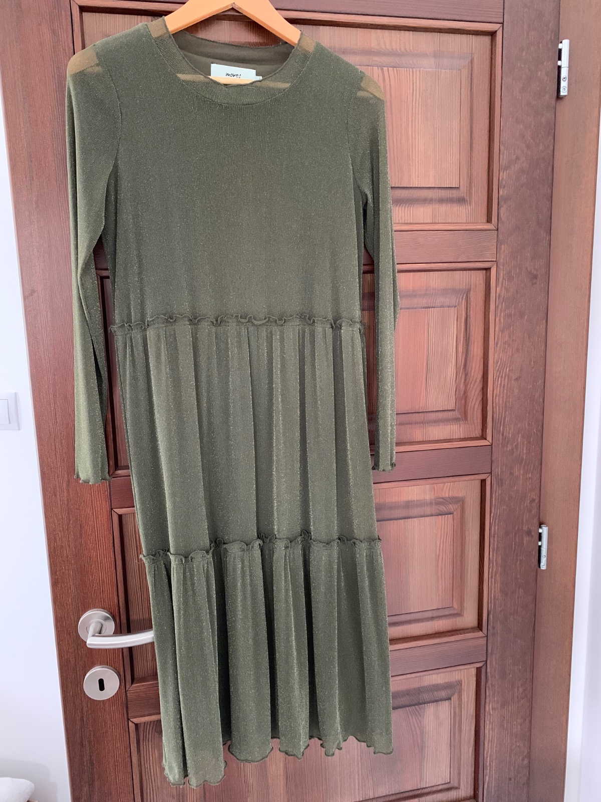 oblecene jeden krat, priesvitne rukavy. velkost uvedena XS ale je to elasticky material, oblecie aj S. dlzka 108cm , sirka cez prsia cca 42cm