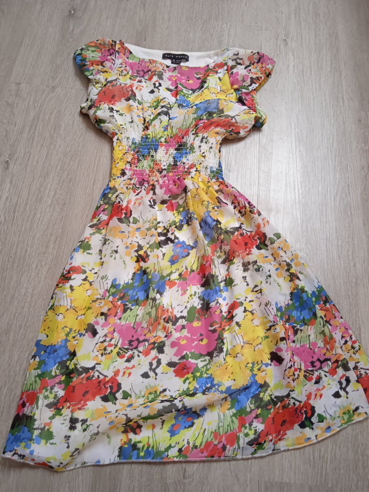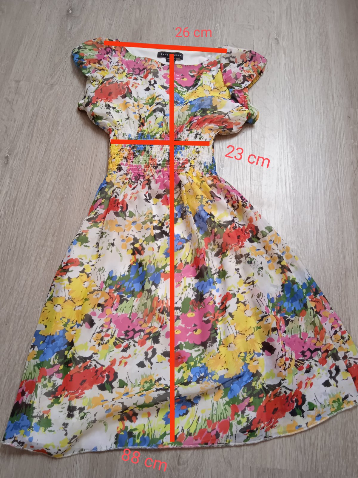 Ľahučké letné šaty vhodné pre mladé dievča alebo ženu. Veľmi úzky pás. Rozmery na foto.