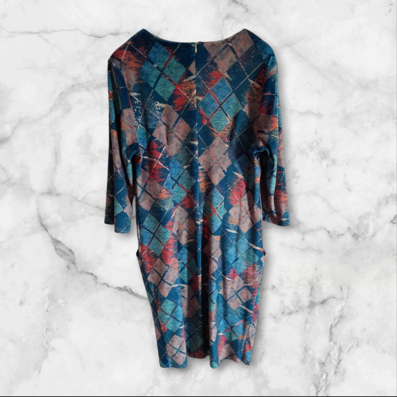 ponukam len odskusane upletove saty,po bokoch maju vrecka,vzadu zips a maly rozporok,.dlzka šiat je 105cm šírka pod pazuchami 57cm,rukáv od ramena meria 45cm.