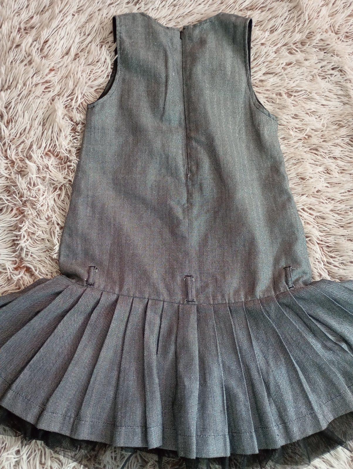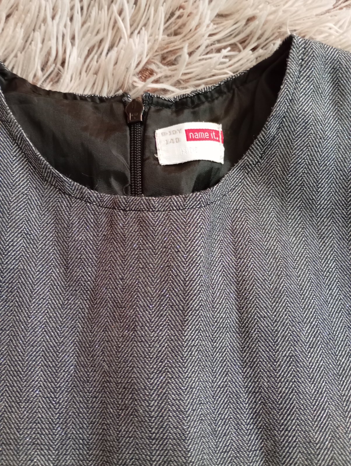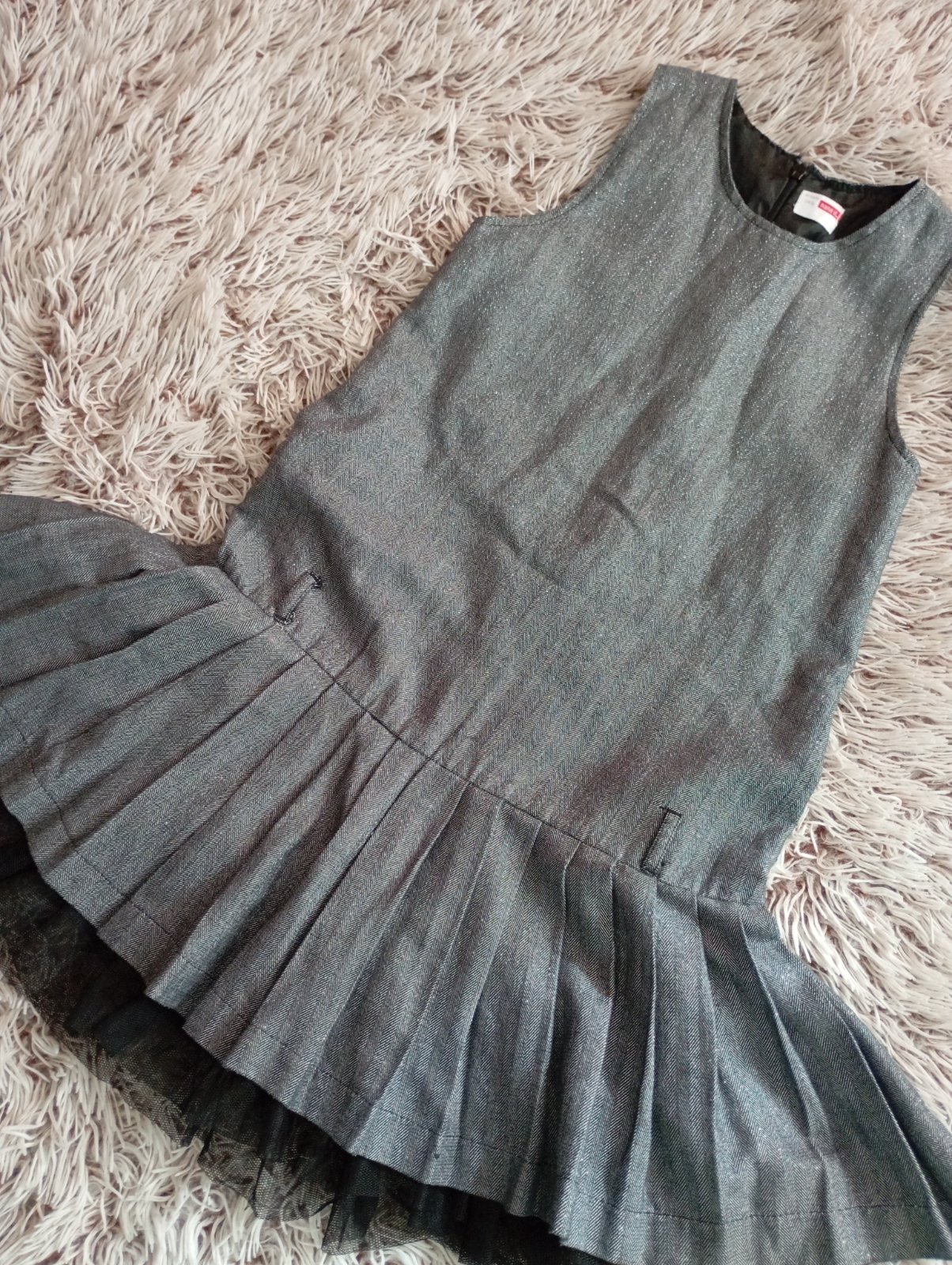Krásne trblietavé šaty bez rukávov, zapínanie na zips na chrbte, tylová spodnička, "pútka" na opasok, ale opasok sme k tomu nemali. Minimálne nosené, žiadne poškodenia.