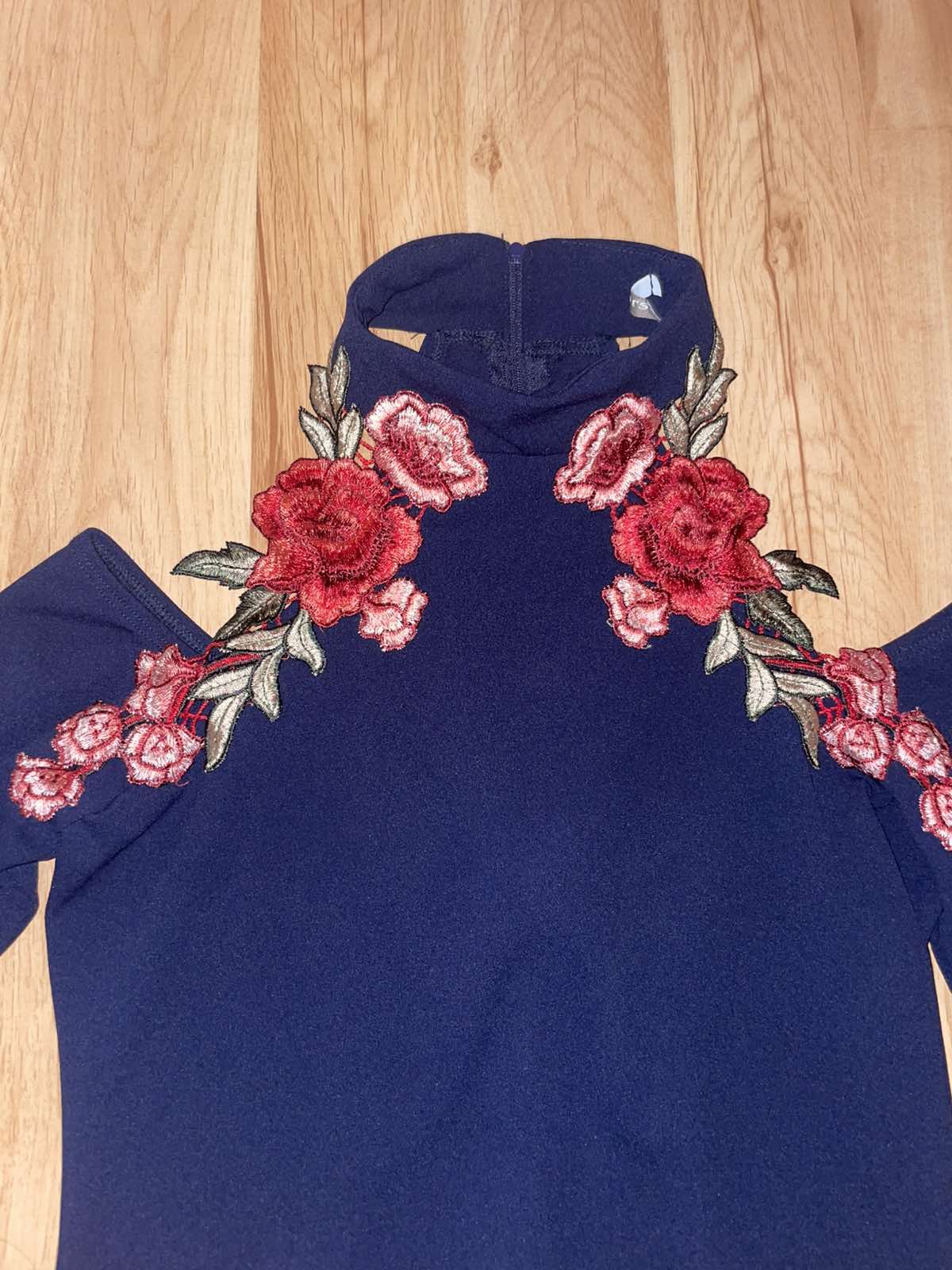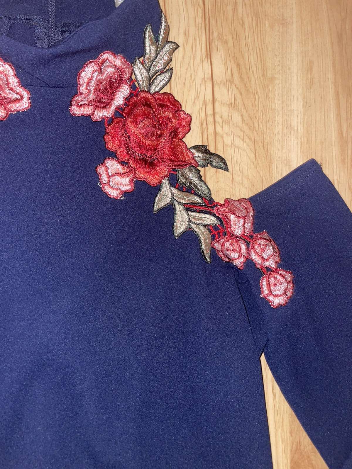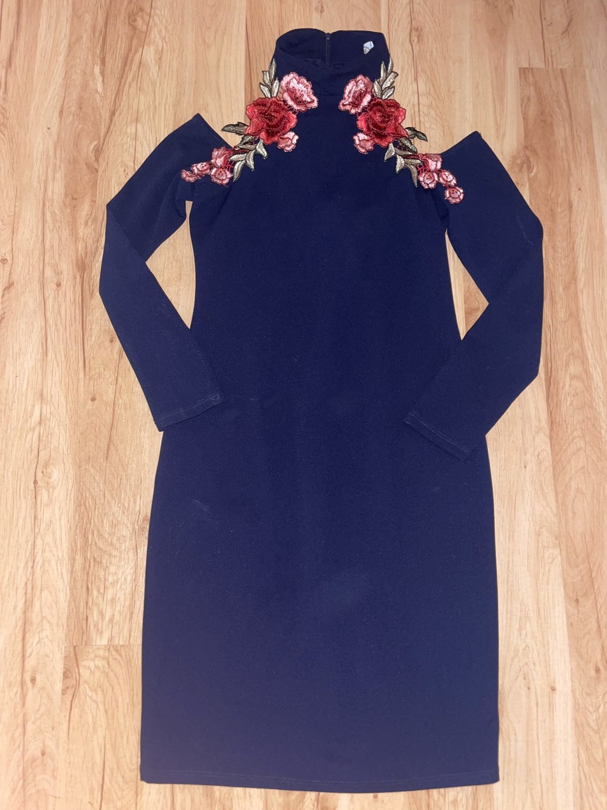 Len vyskúšané, modré spoločenské šaty, pružné, krásna výšivka, sedia na veľkosť 36,šírka pod pazuchami 42 cm, dĺžka 88 cm