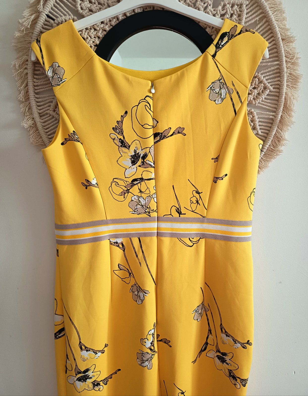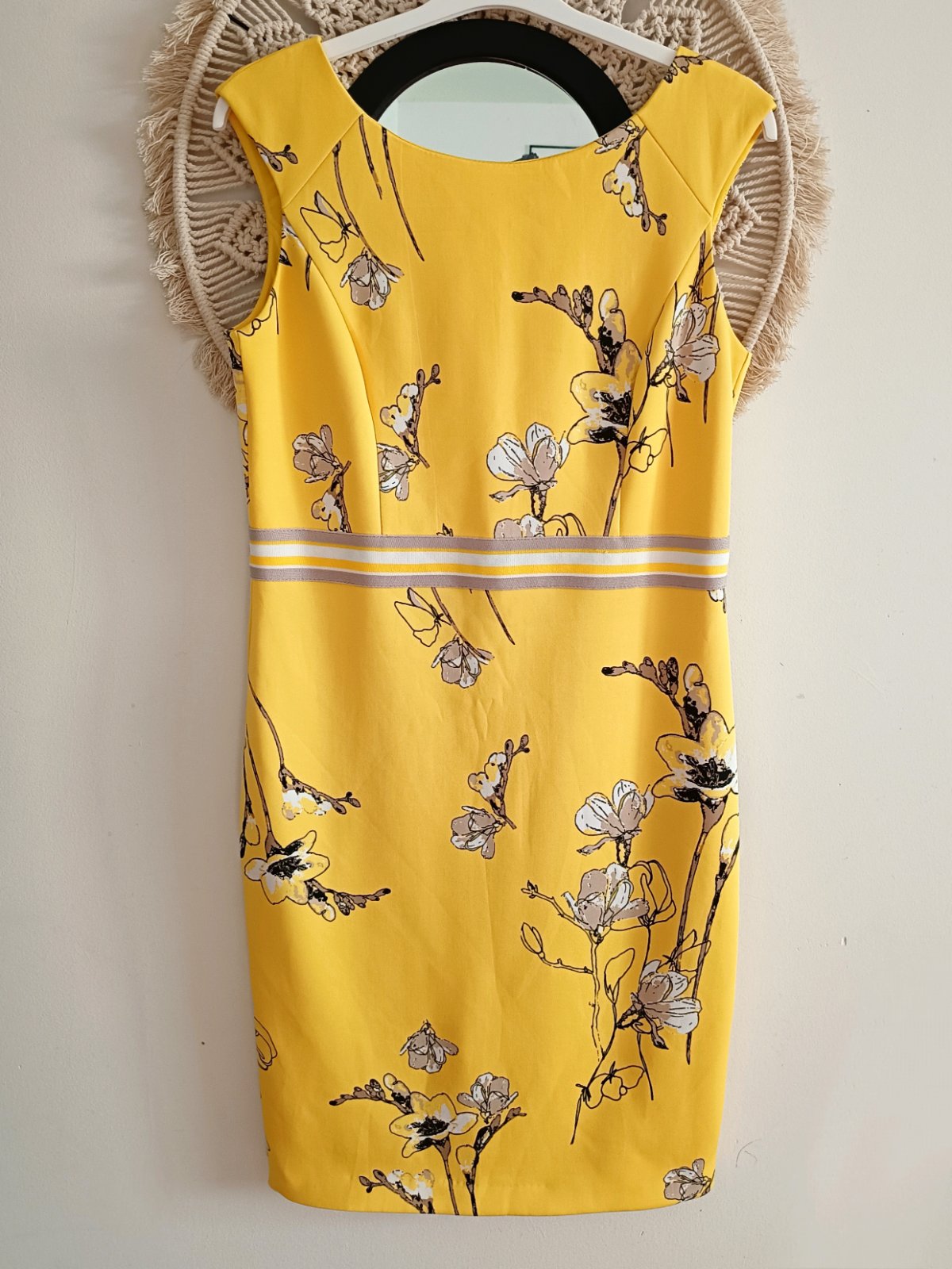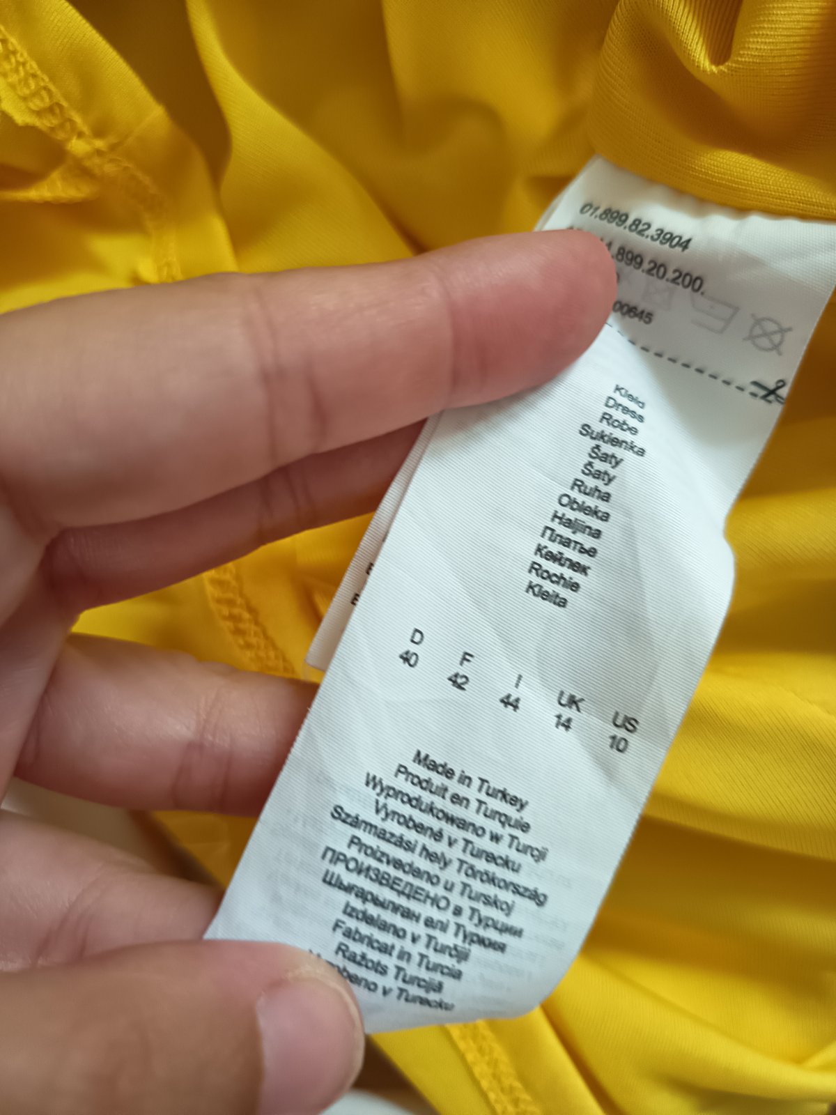 žiarivá žltá farba, iba raz oblečené. sirka pod pazami je 47cm, sirka v pase, kde je prestrih je 42cm, celk.dlzka siat je 94cm