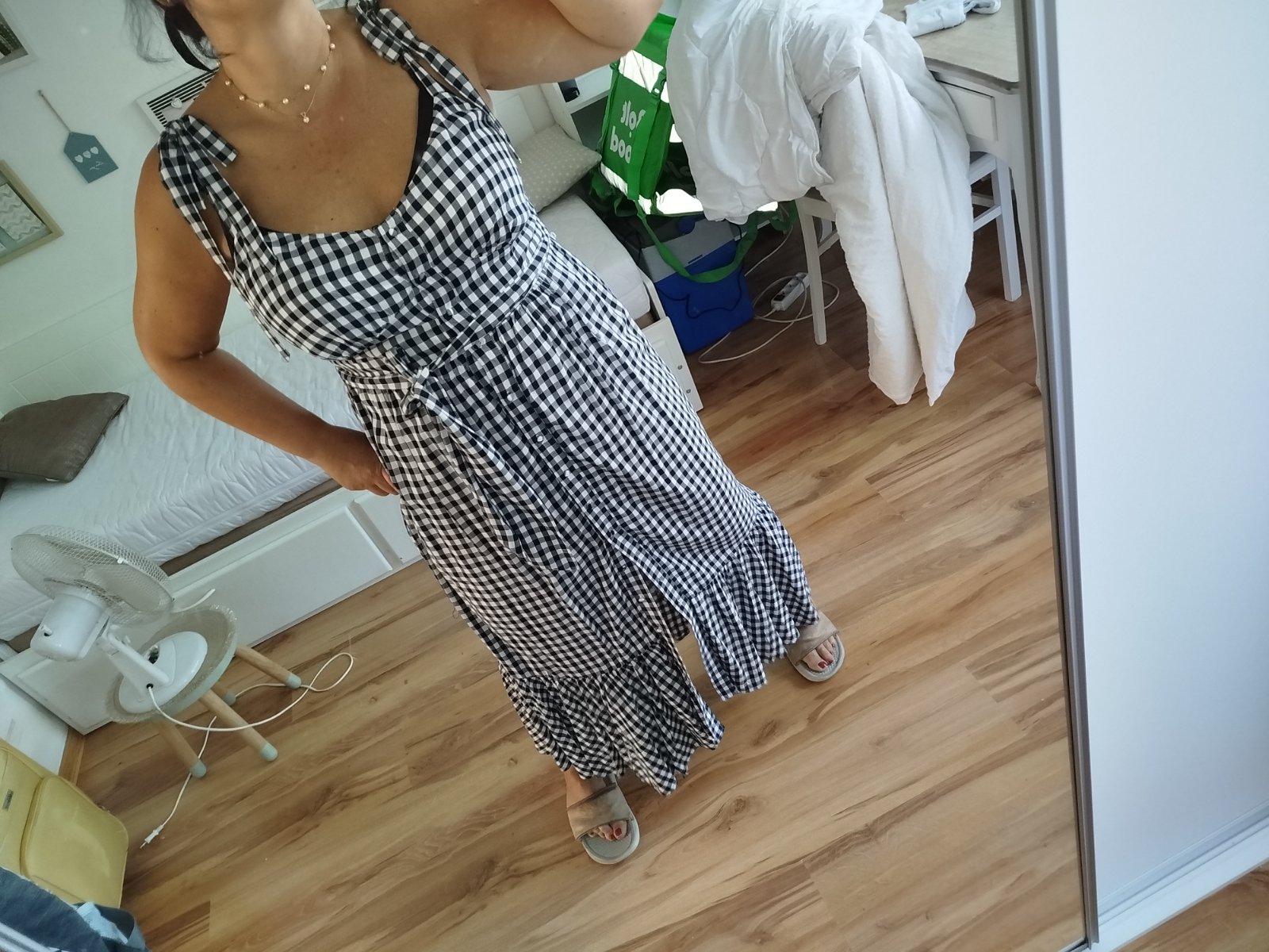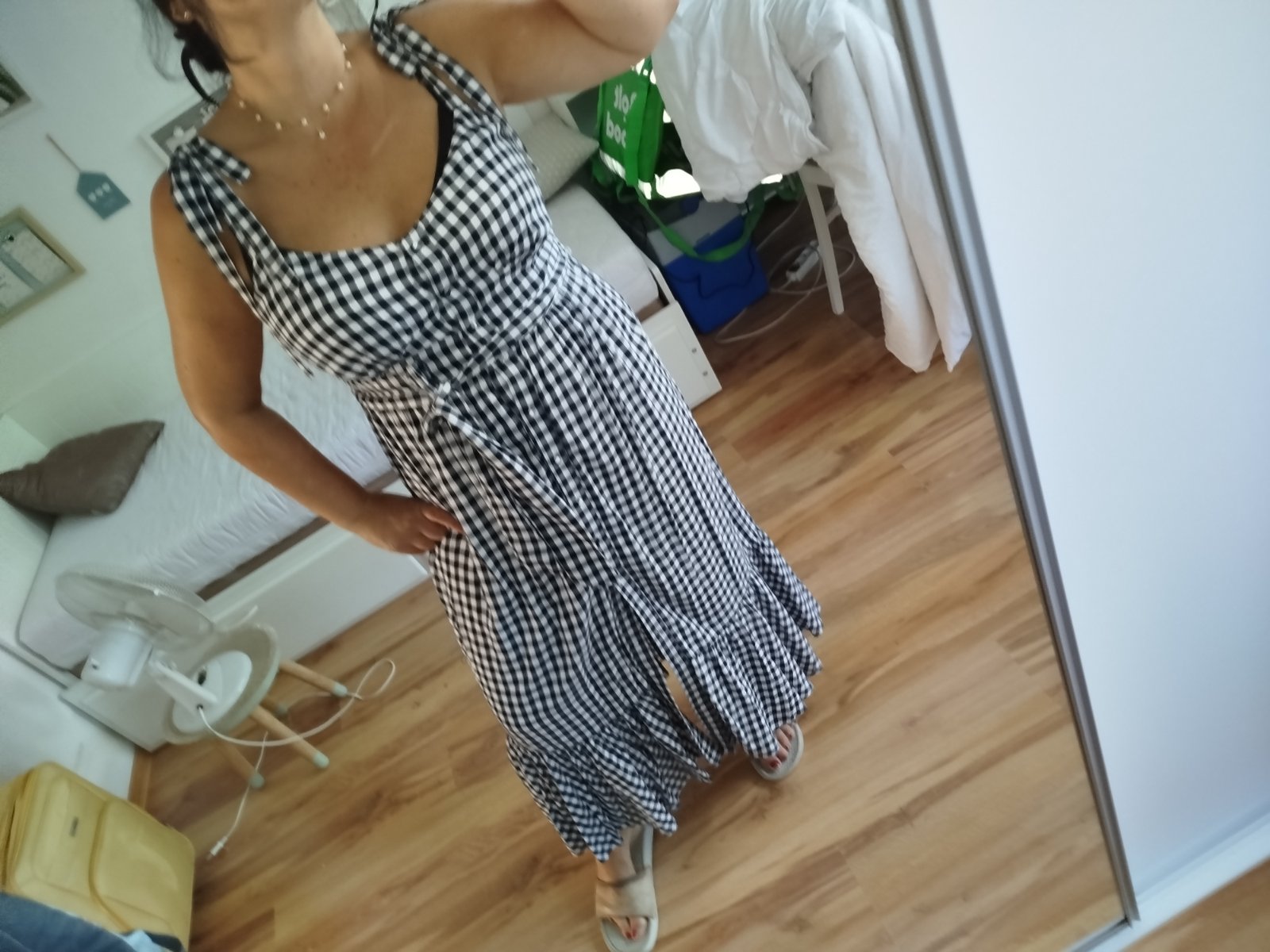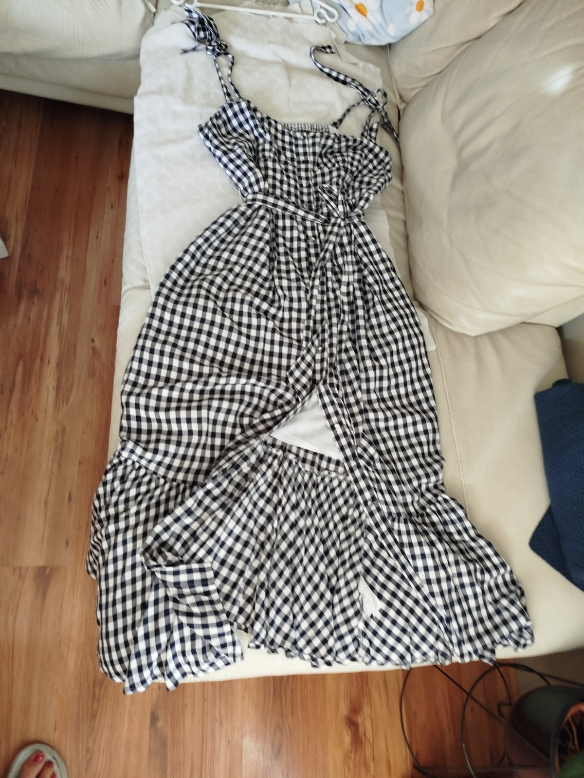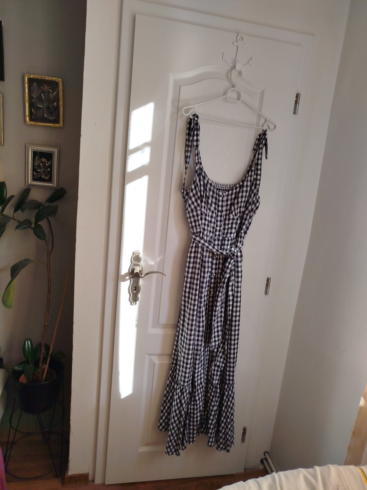 Krásne šaty podsite málo nosené bez poškodenia sú kvalitné padave ženské dole volán na ramenách mašle,dĺžka 140cm šírka pod pazuchami v kľude cca 50x2cm majú vzadu široké jemne gumky tak sa prispôsobia aj na 60x 2 cm pás 45x 2cm píšu c.12 sadnú aj na Xl