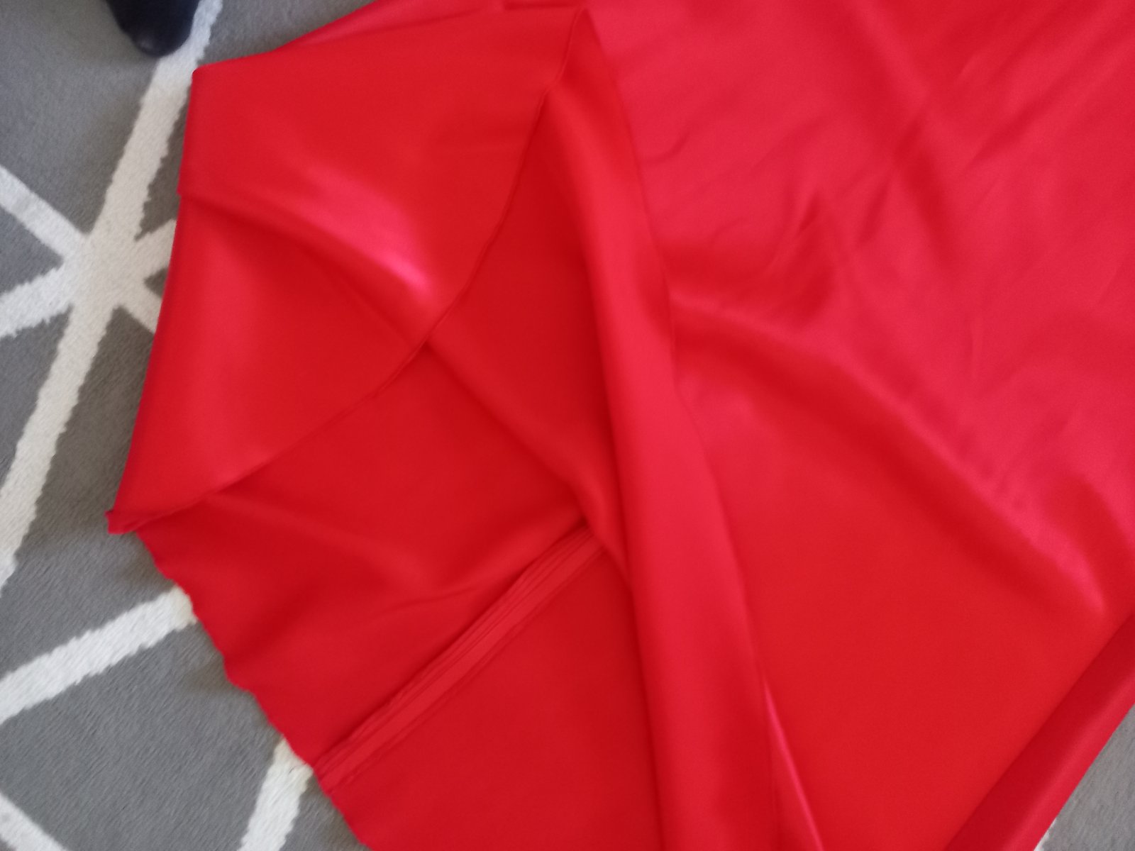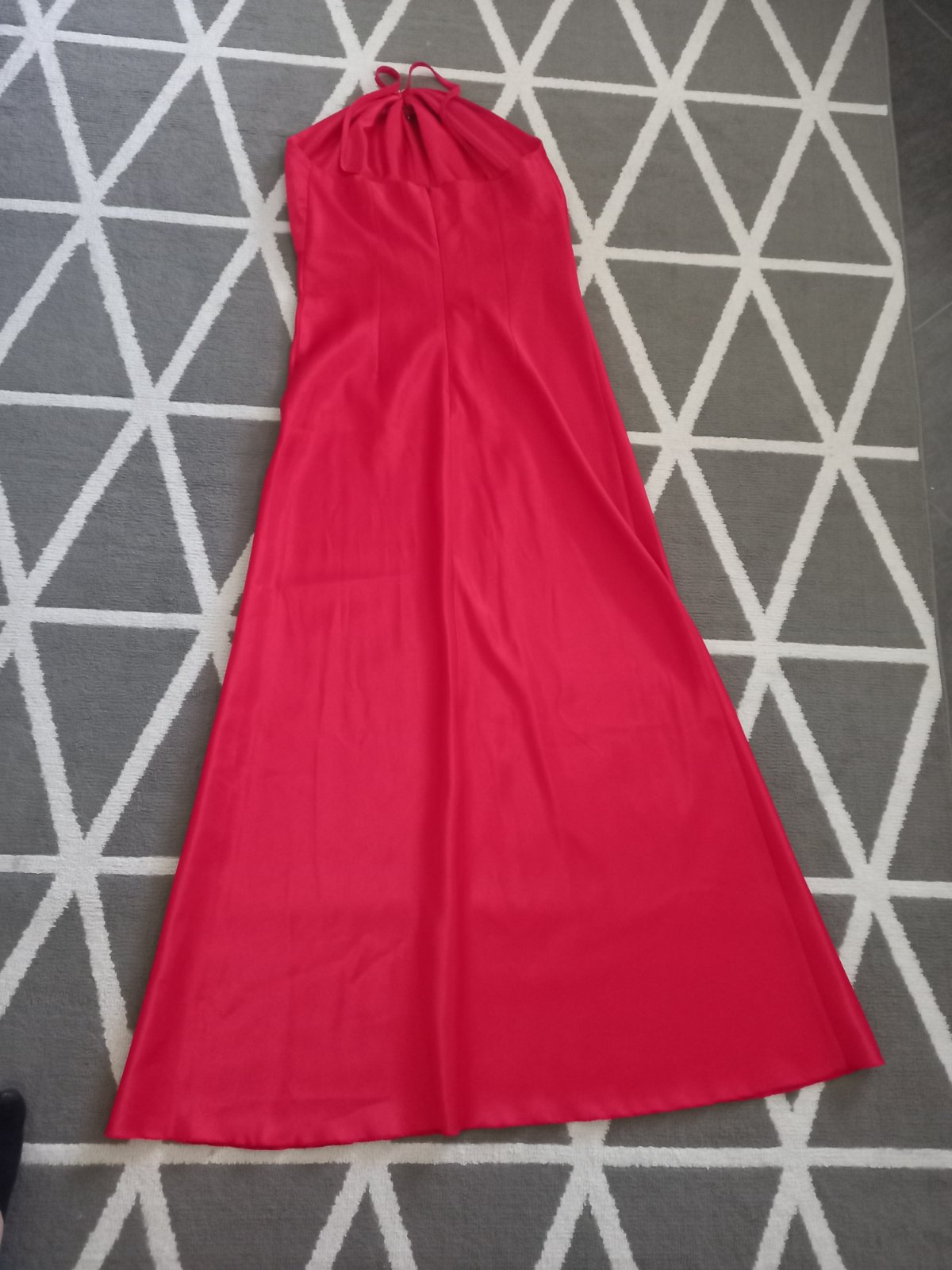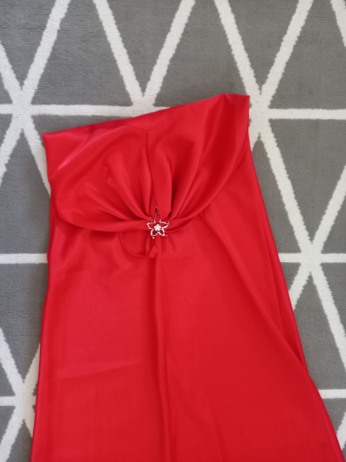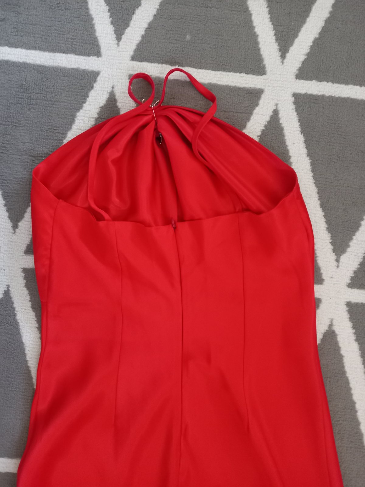 Predám krasne kvalitne saténové šaty. Pekna červená. Kvalitny hruby saten, ziadna čína. Bez poskodení, zapínanie zozadu na krytý zips. Celková dlzka aj s ramienkami 150cm, sírka cez prsia 2x41cm, pod prsiami v najužšom mieste 2x38cm. Krasny jemný A-ckovy strih. Foto na postave nerobim, su mi male, riadte sa prosim podla rozmerov.Cena +posta.