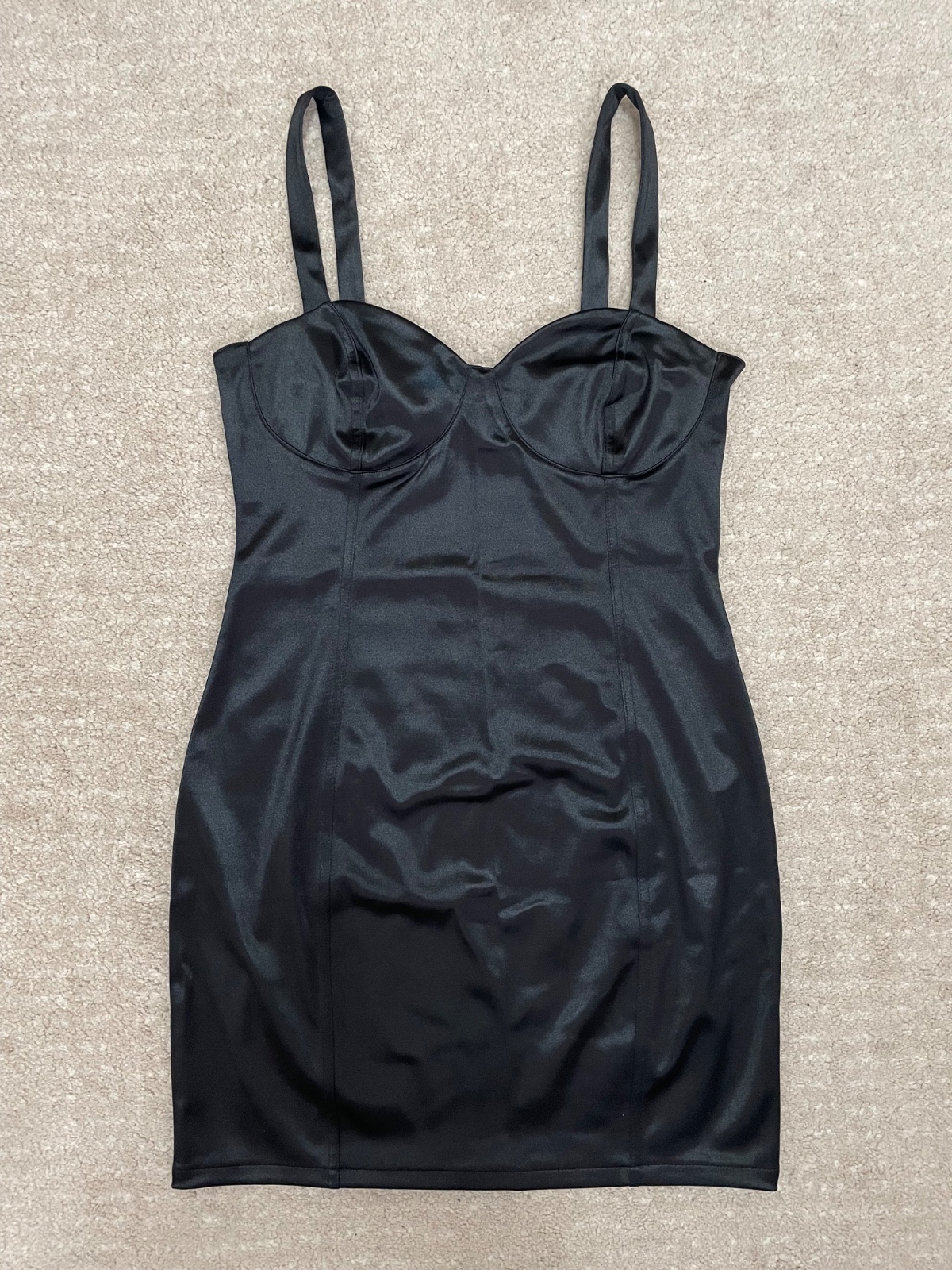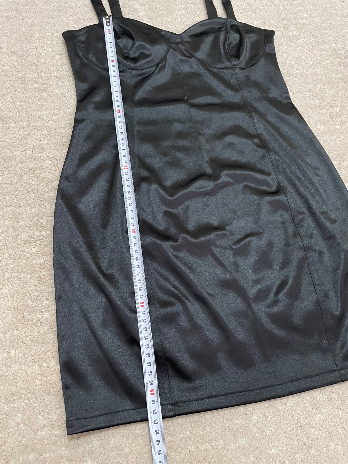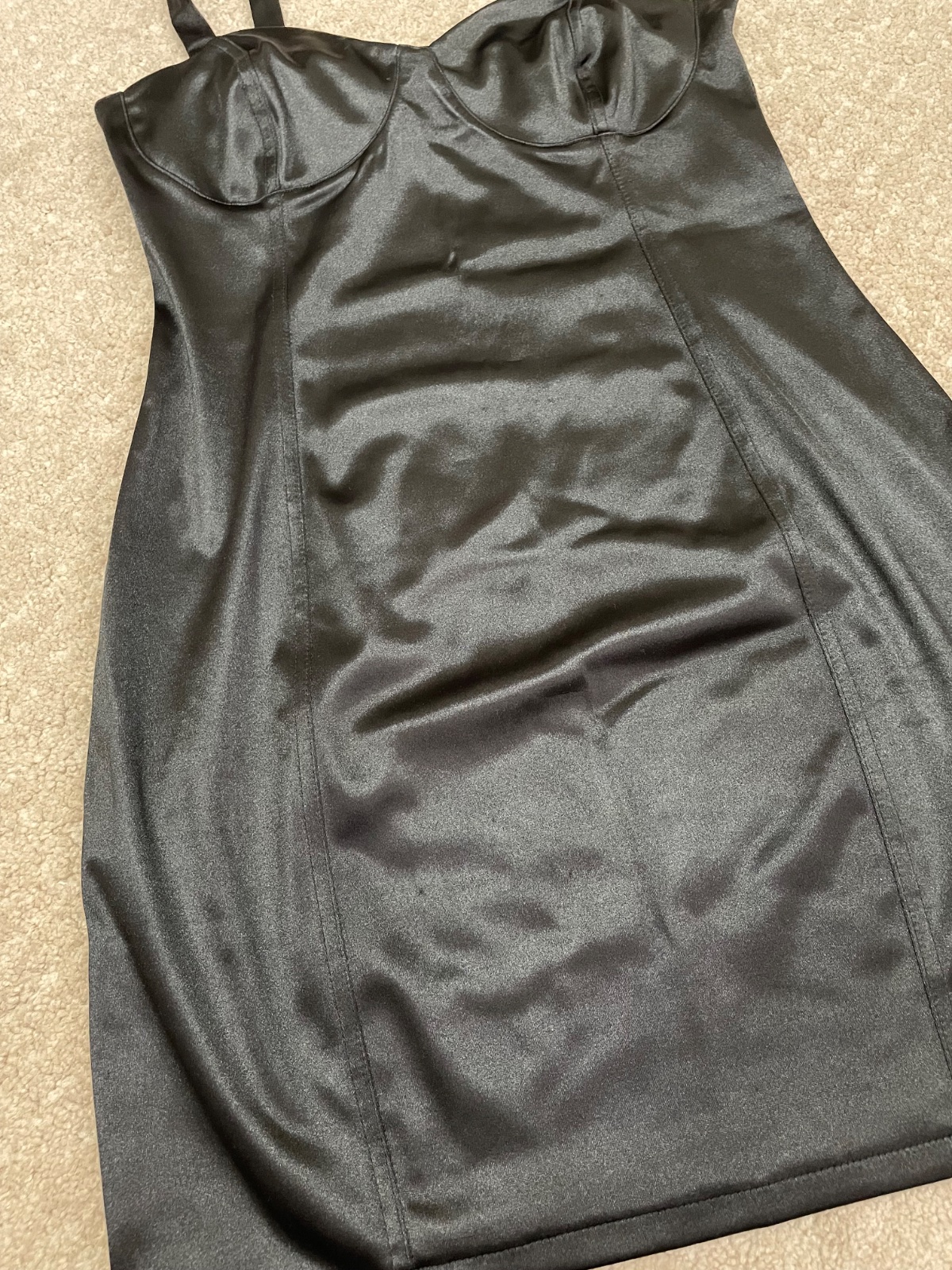 Čierne saténové lesklé minišaty. Korzetový vrch. Na party alebo oslavu.